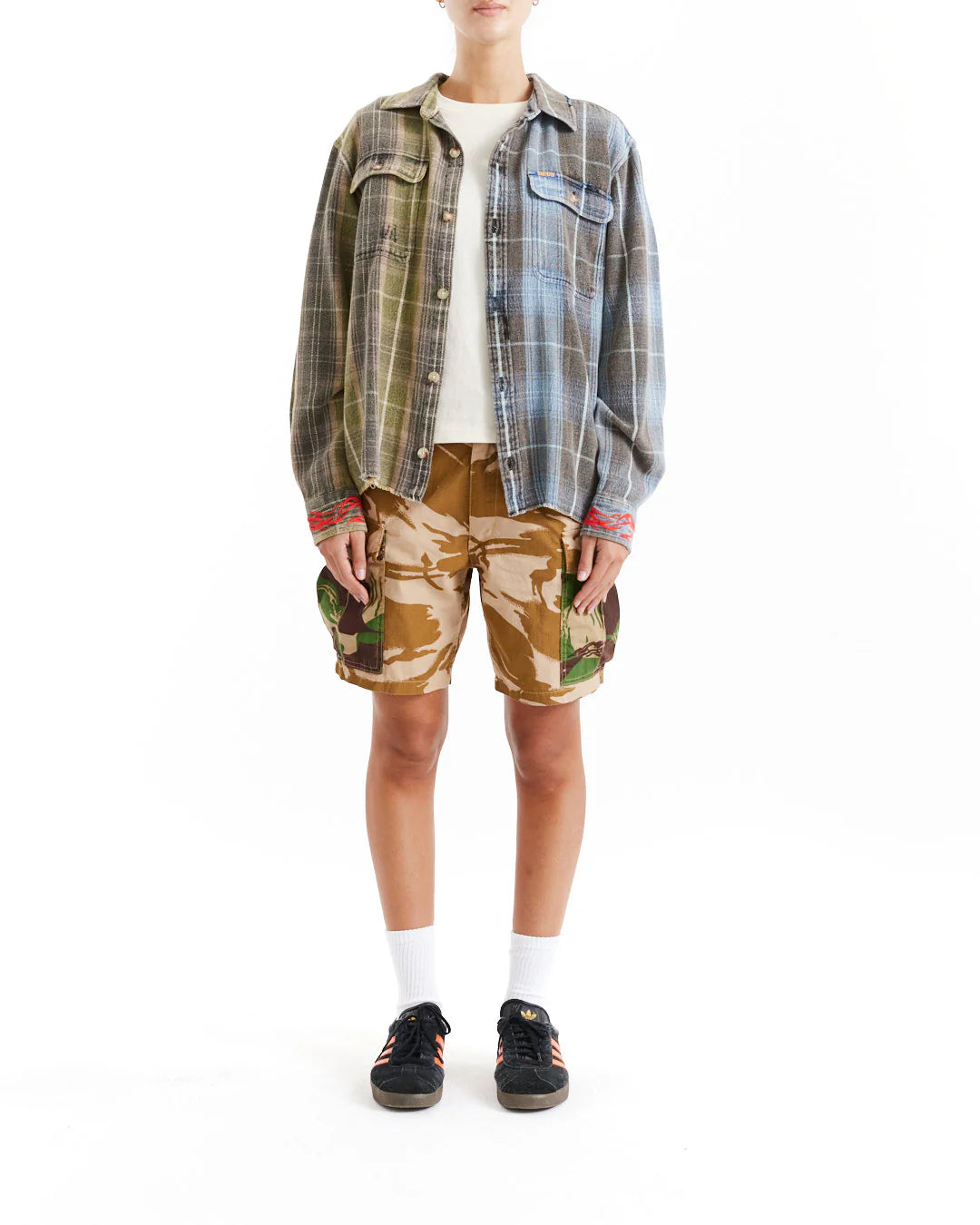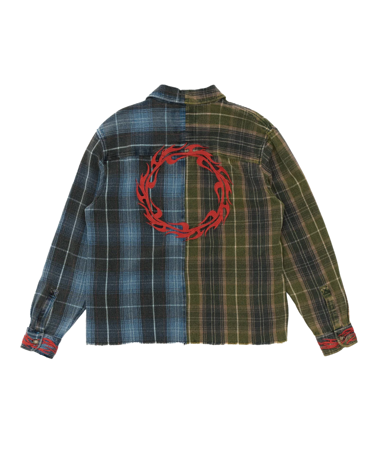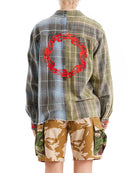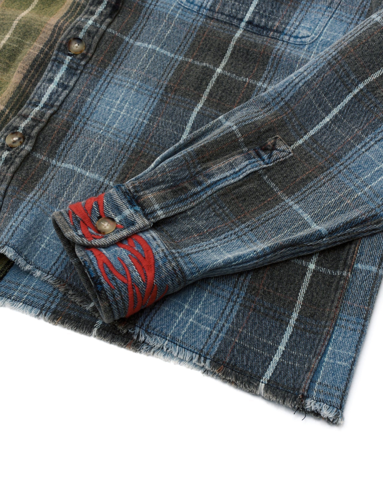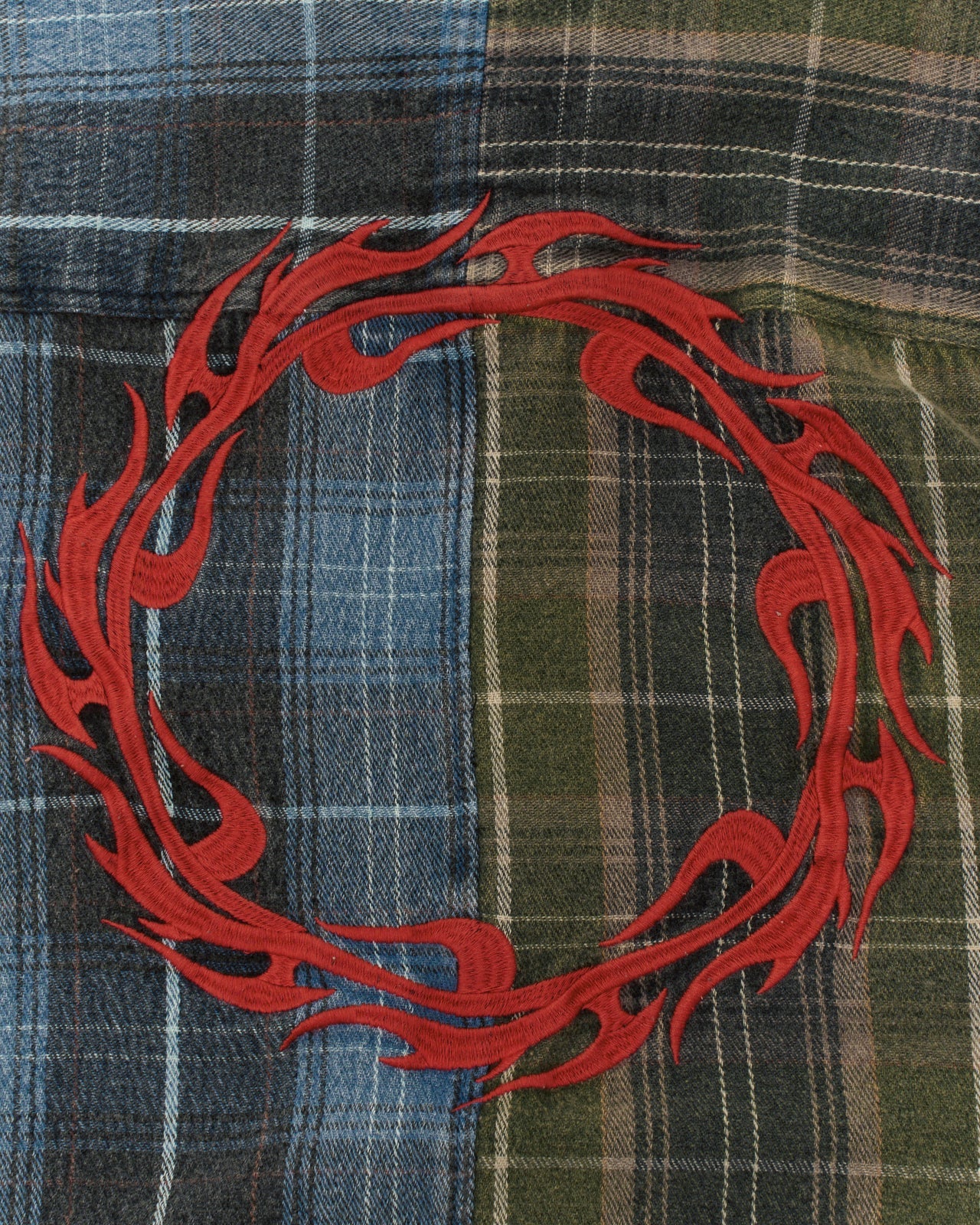 Oversized Fit Yarn Flannel Shirt With Branding On Chest Pocket And Embroidered Art At Back And Cuffs, Raw Hem Detail, Front Patch Pockets, Real Horn Button Centre Front Closure, In A Cotton Yarn Dyed Check Fabrication With A Heavy Enzyme Stone Wash And Localised Vintage Fade Effect