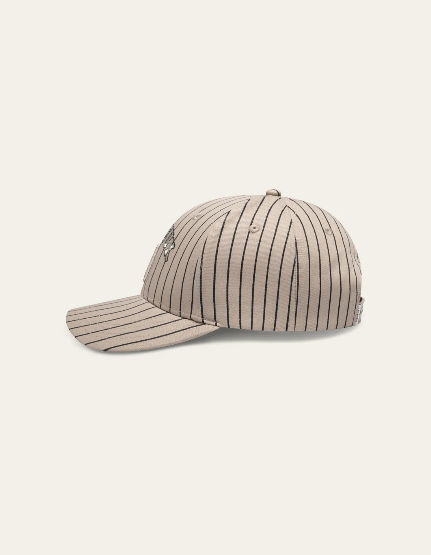 A sports-inspired style in cotton twill with a printed pinstripe finish. The Blake W Cap is detailed with bold embroidered artwork at the front.