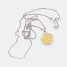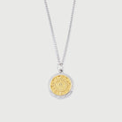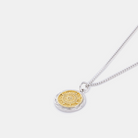 The Silver Compass Necklace is a round pendant with a two tone finish. It is made from 925 Sterling Silver & 14KT Gold and is hallmarked by the Goldsmiths' Company Assay Office verifying its quality.