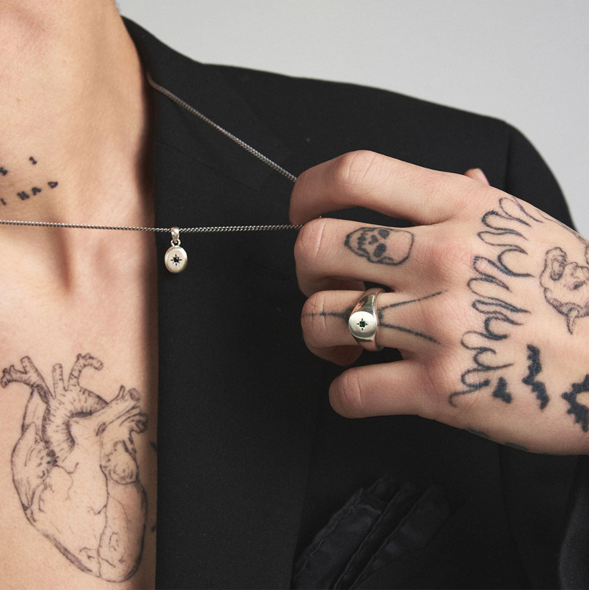 The Grunge Romance collection allows you to embrace darker, more complex emotions through the use of sinister motifs and foreboding aesthetics inspired by goth, emo, grunge and punk subcultures. Classic grunge and punk components such as chains, studs, crosses, razors and stars define this collection, creating a distinctive aura around the pieces and a clear narrative of seeing light through darkness and a feeling of hopefulness.