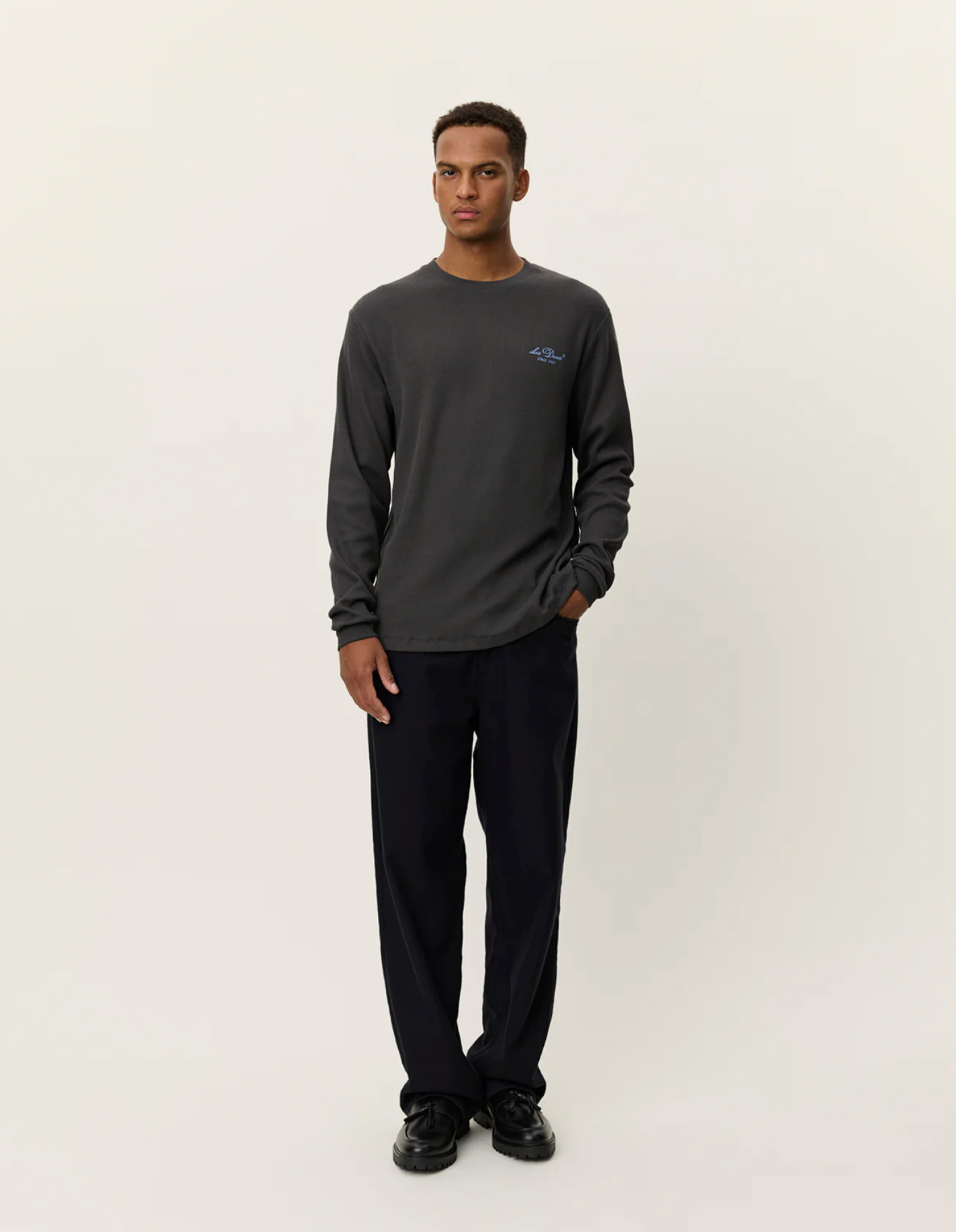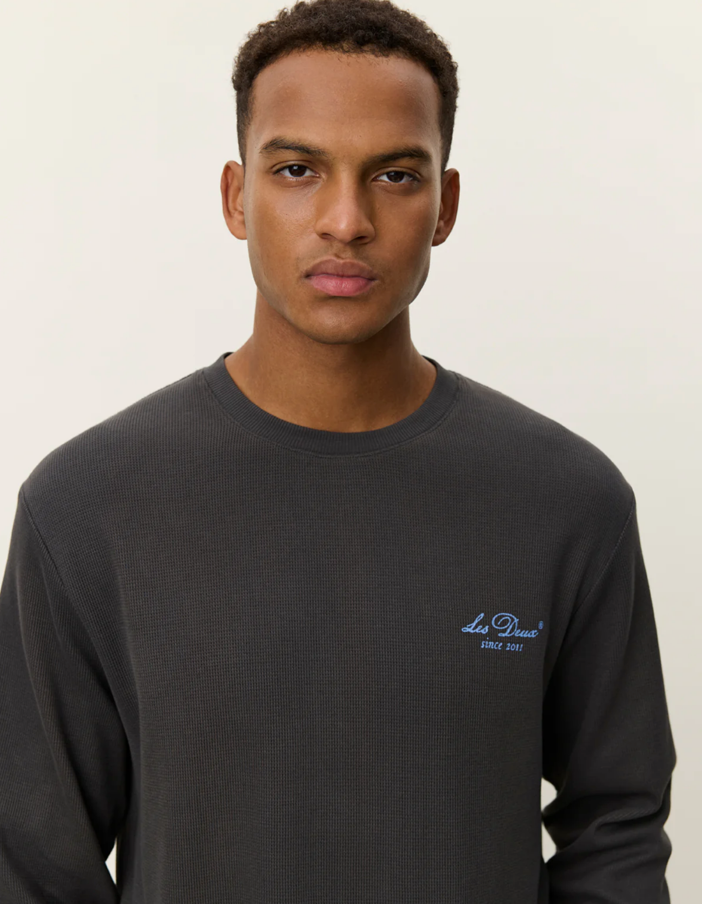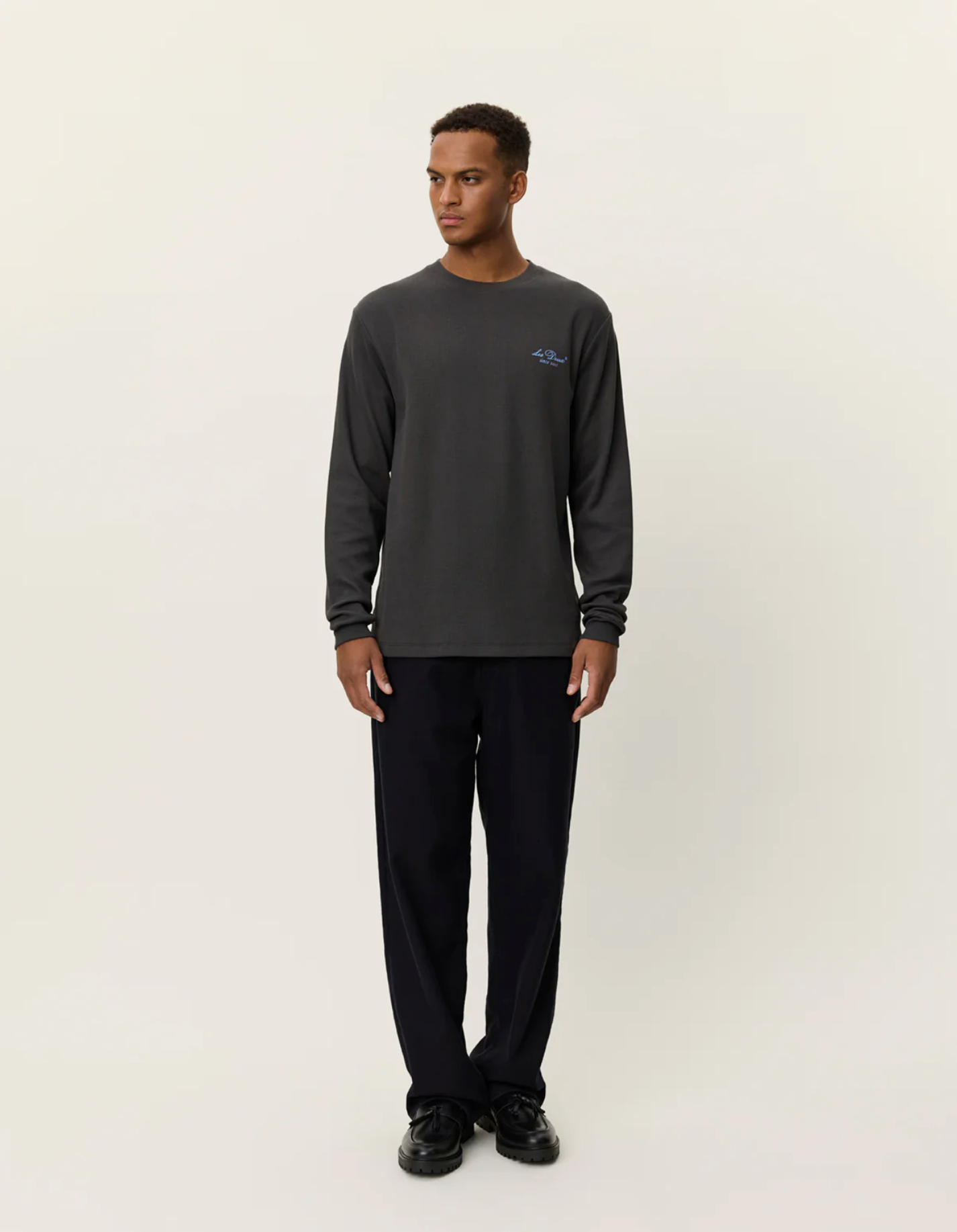 Les Deux Brady Skyline Waffle LS T-Shirt - 'Raven Grey'