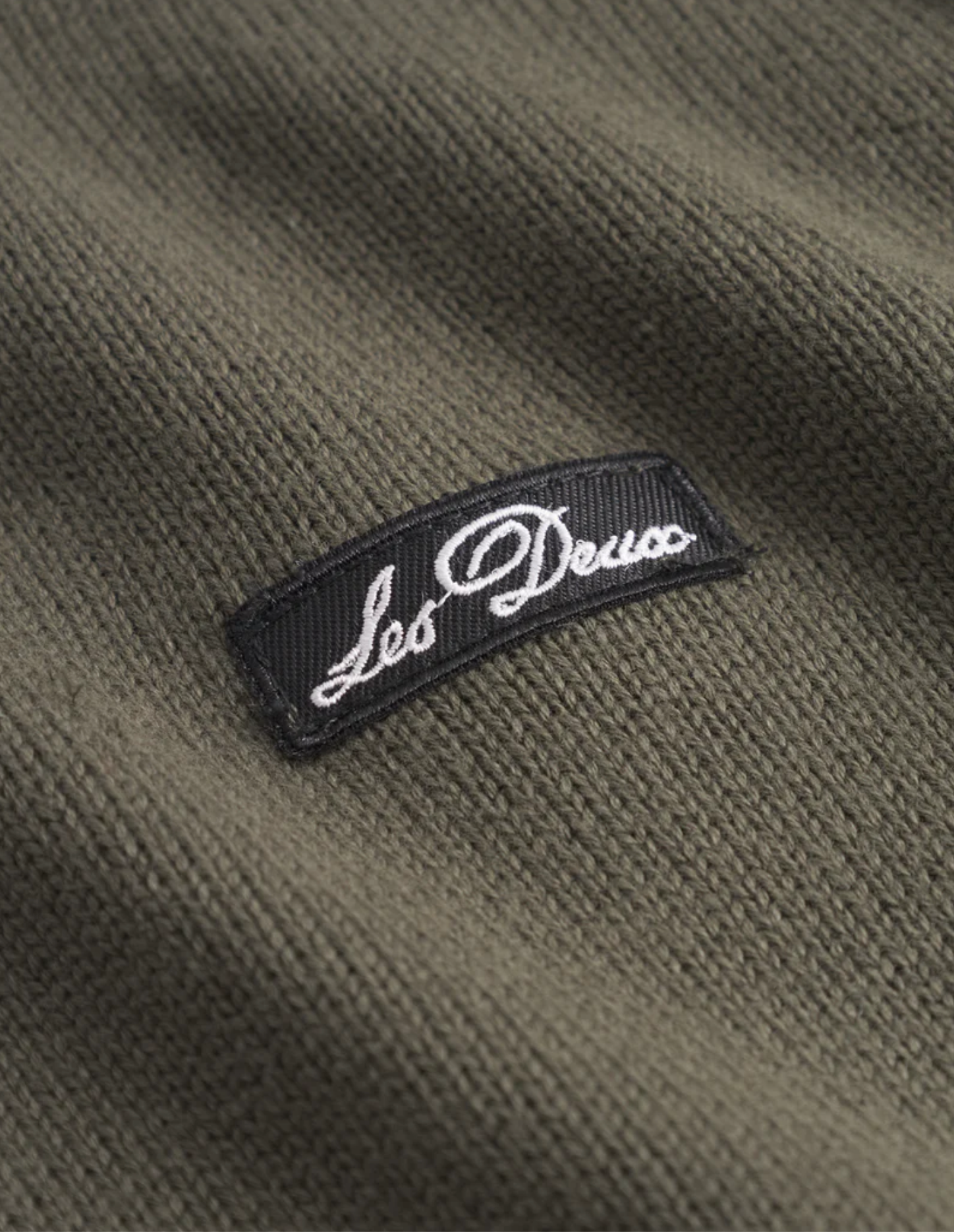 - Cursive brand lettering patch at chest
