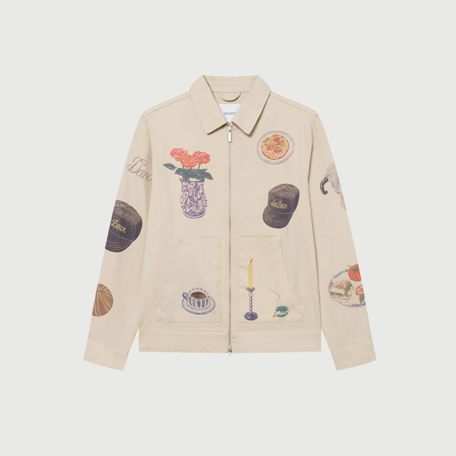 Les Deux Robert AOP Twill Jacket - 'Oyster Grey White'