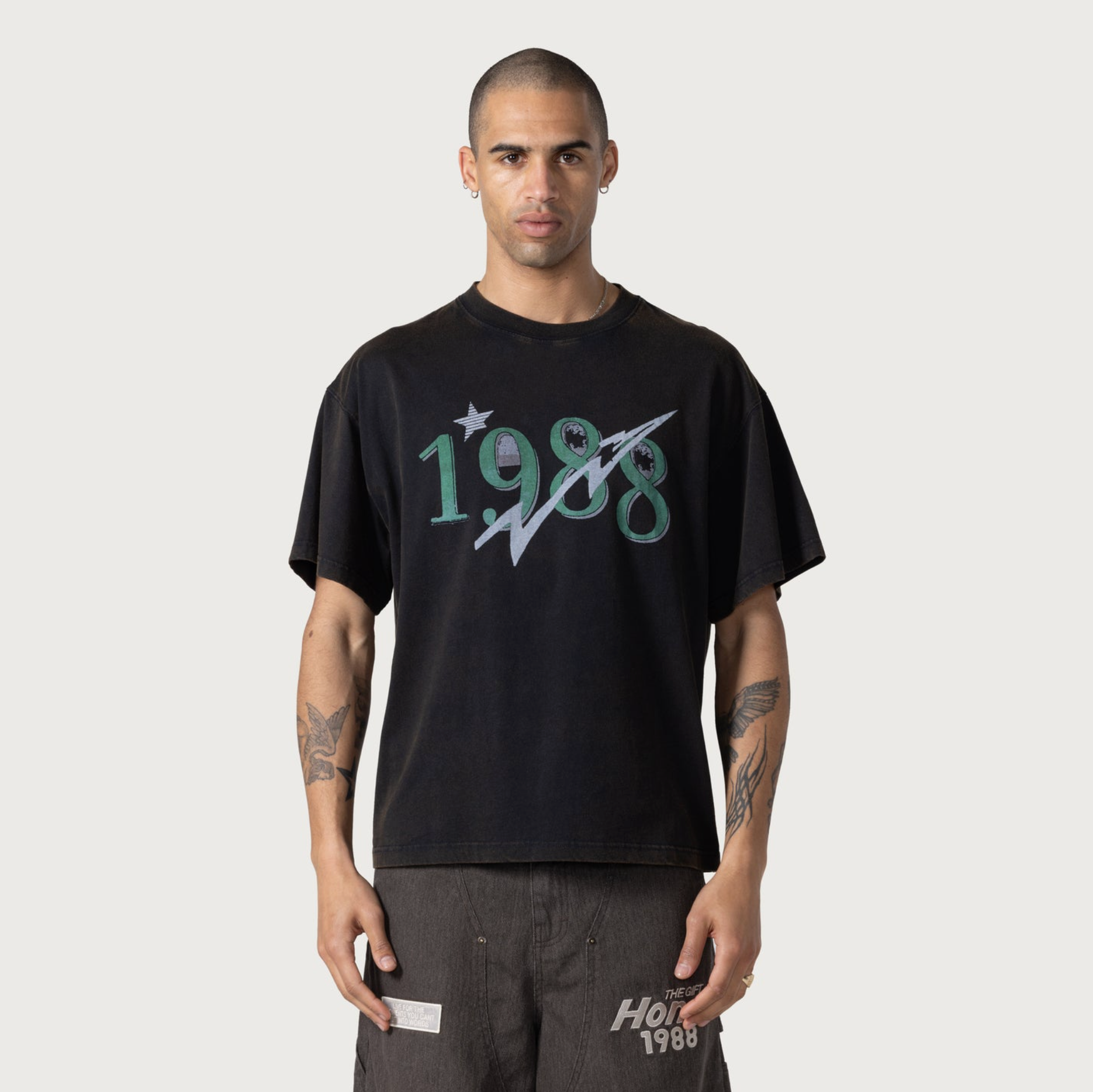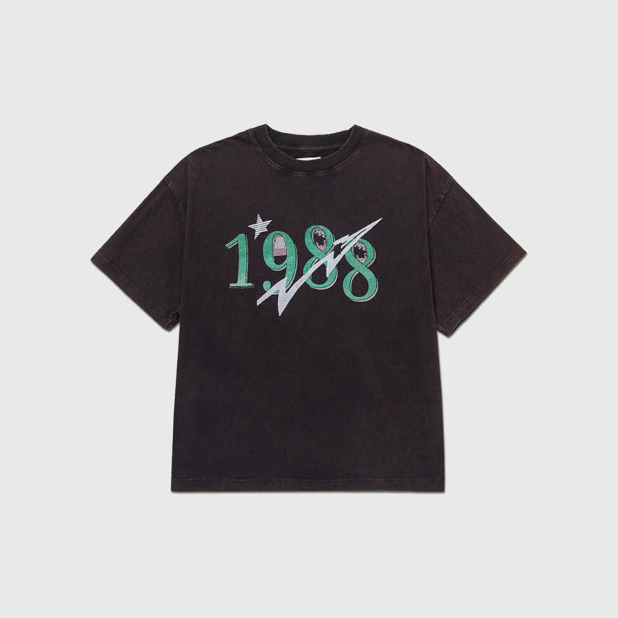 Step back in time with this 5.5oz cotton jersey tee, treated with a potassium wash and enzyme rinse for a perfectly aged vintage feel. The 1988 graphic delivers nostalgic vibes, printed on ultra-soft fabric that’s broken in from the first wear.