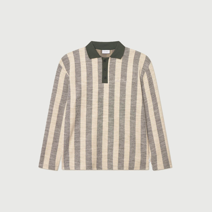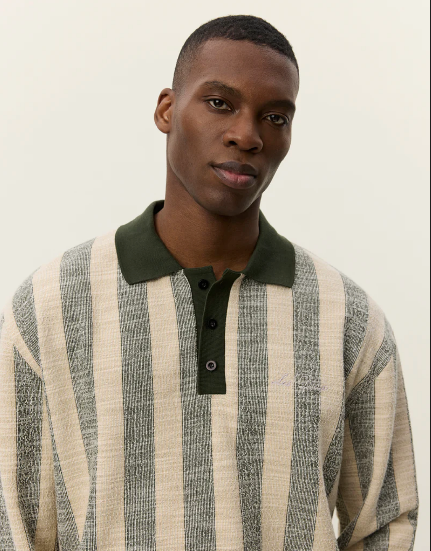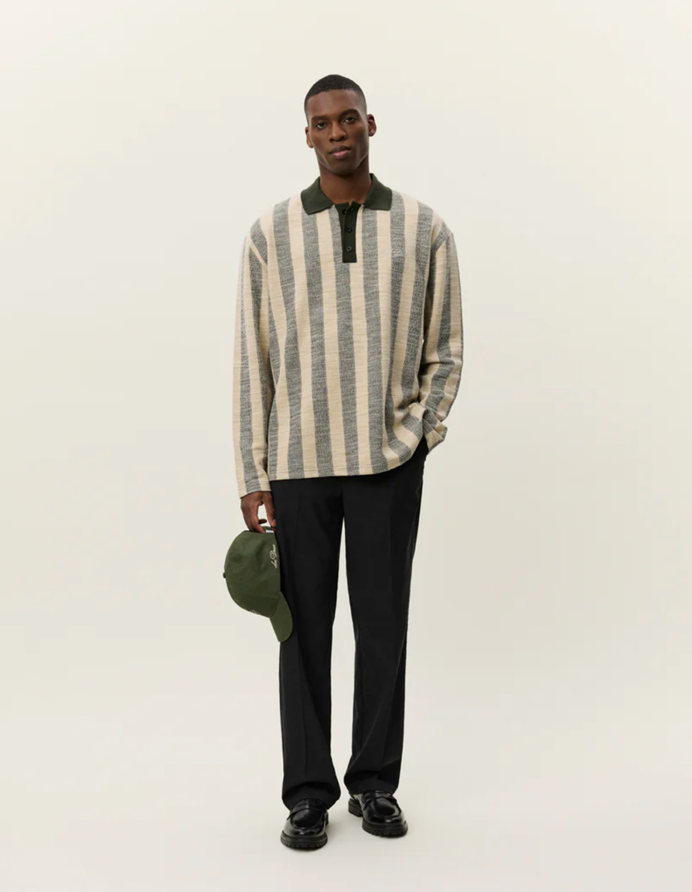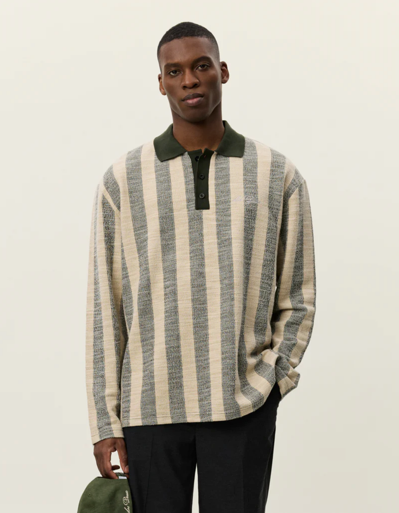 Les Deux Bowie Jacquard Jersey LS Polo - 'Duffle Bag'