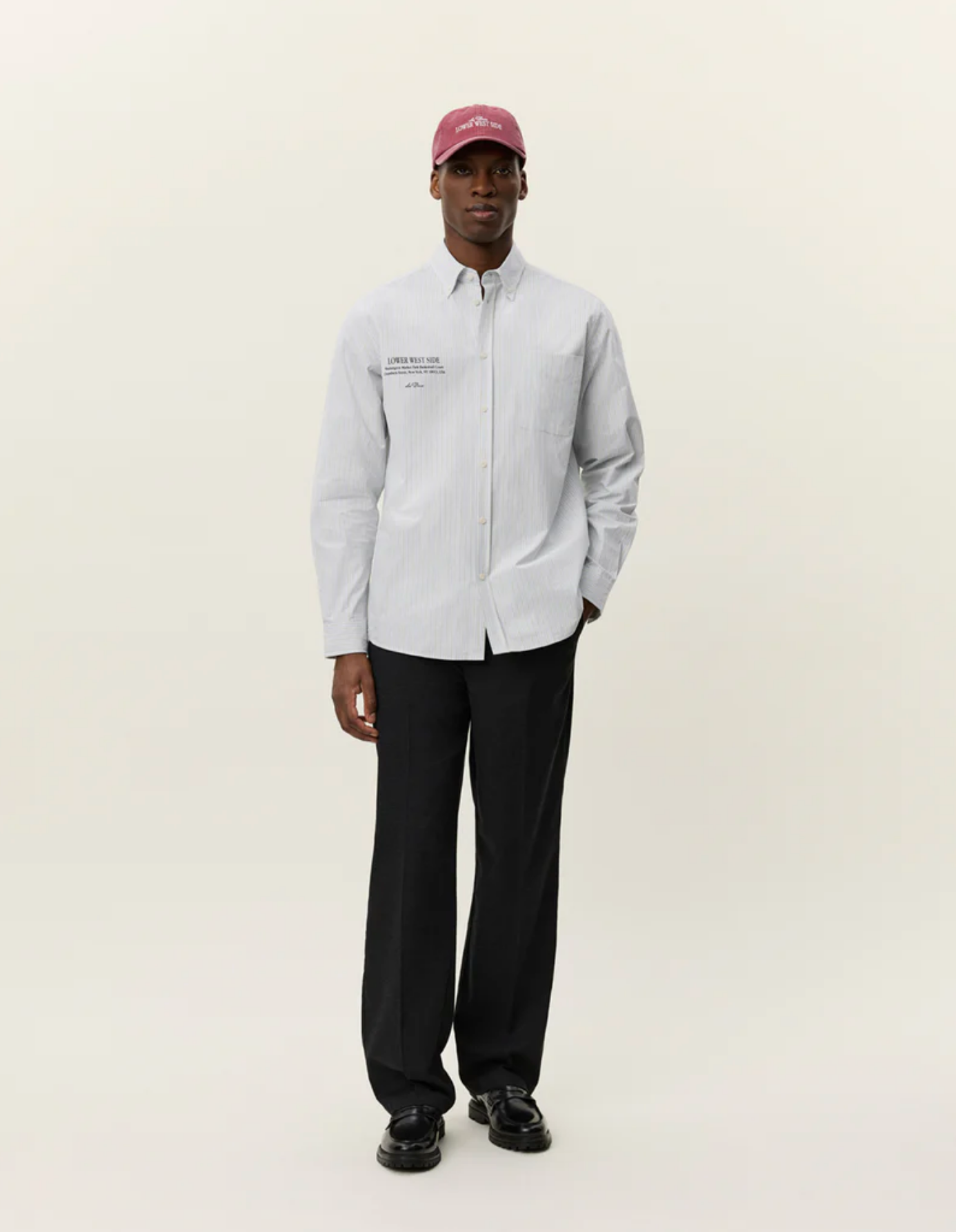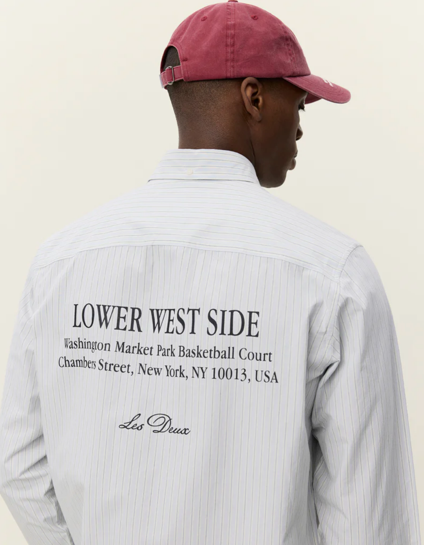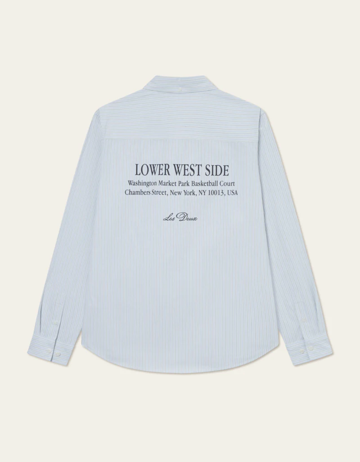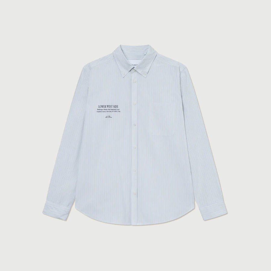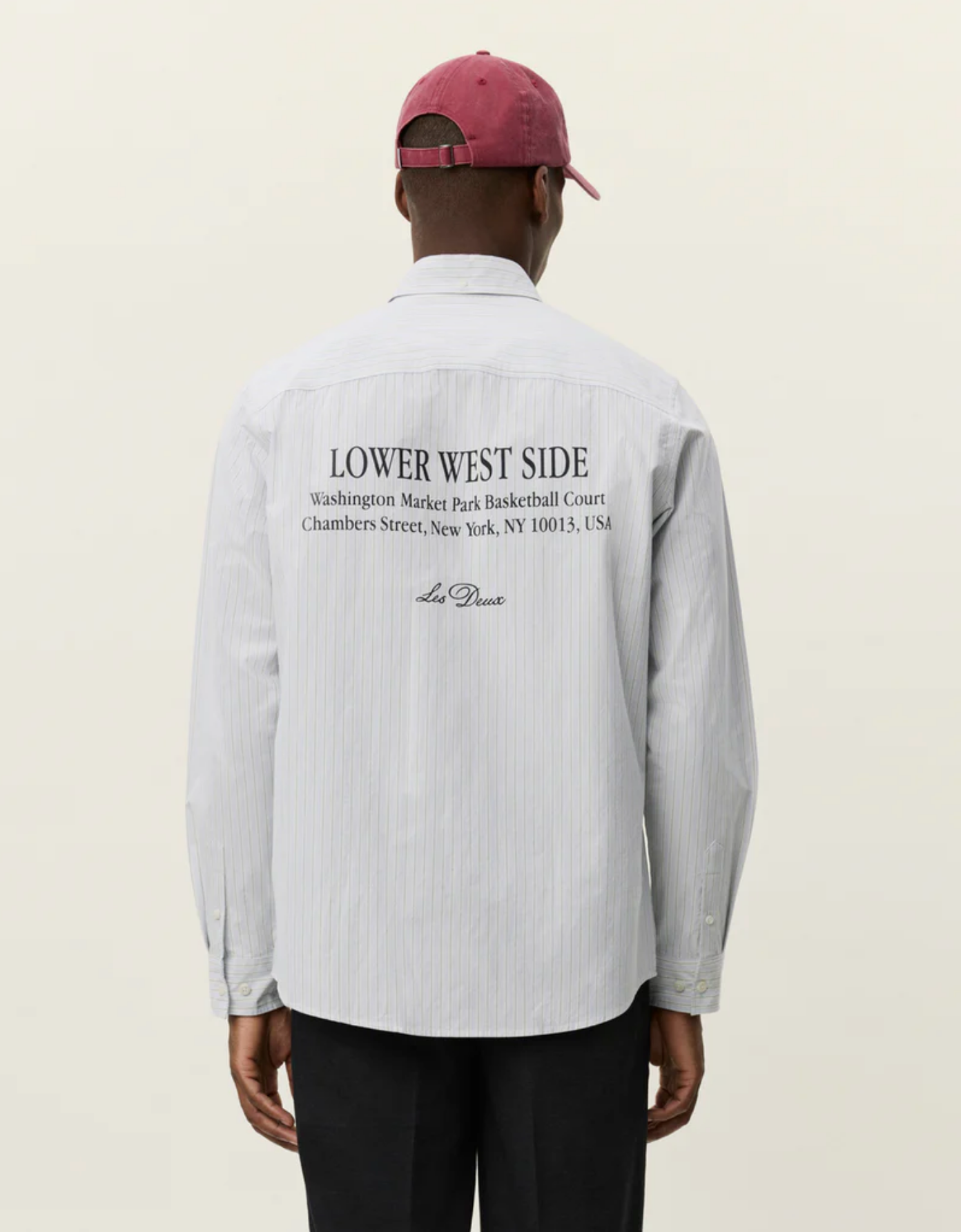 Les Deux Kent Printed Stripe Poplin Shirt - 'Xenon Blue'
