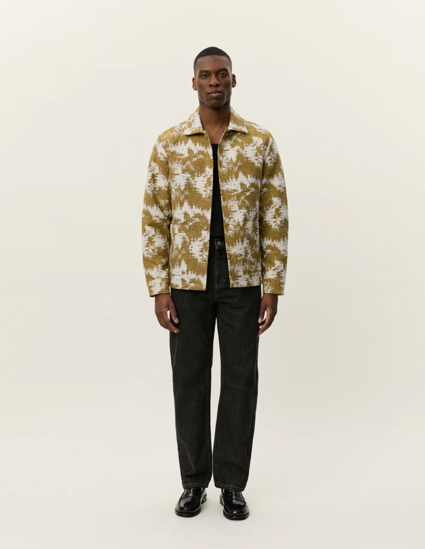 The Layton Cattle Jacquard Overshirt is a bold take on the classic overshirt, crafted in a two-tone jacquard fabric with a straight hem and wide collar for a sharp silhouette.