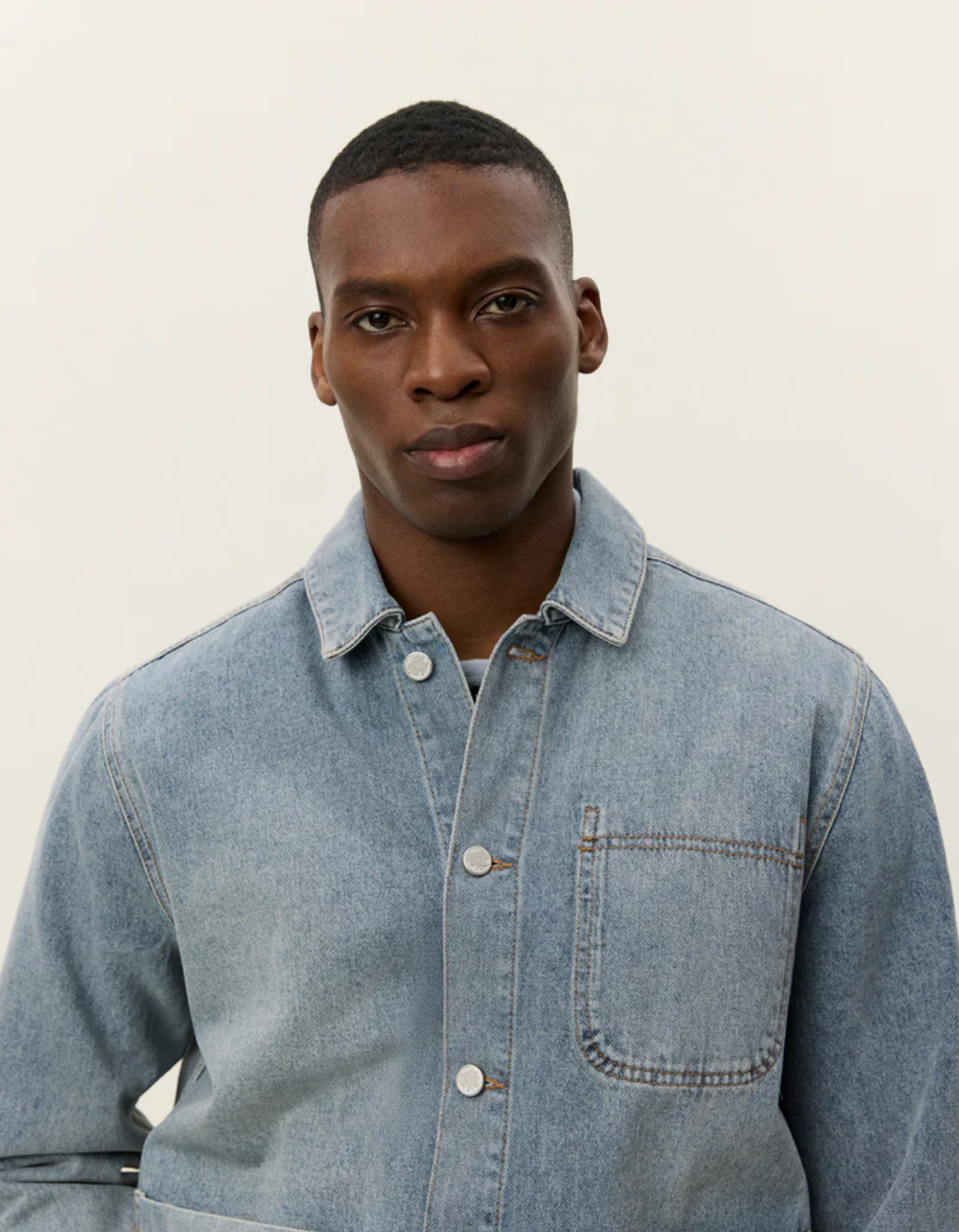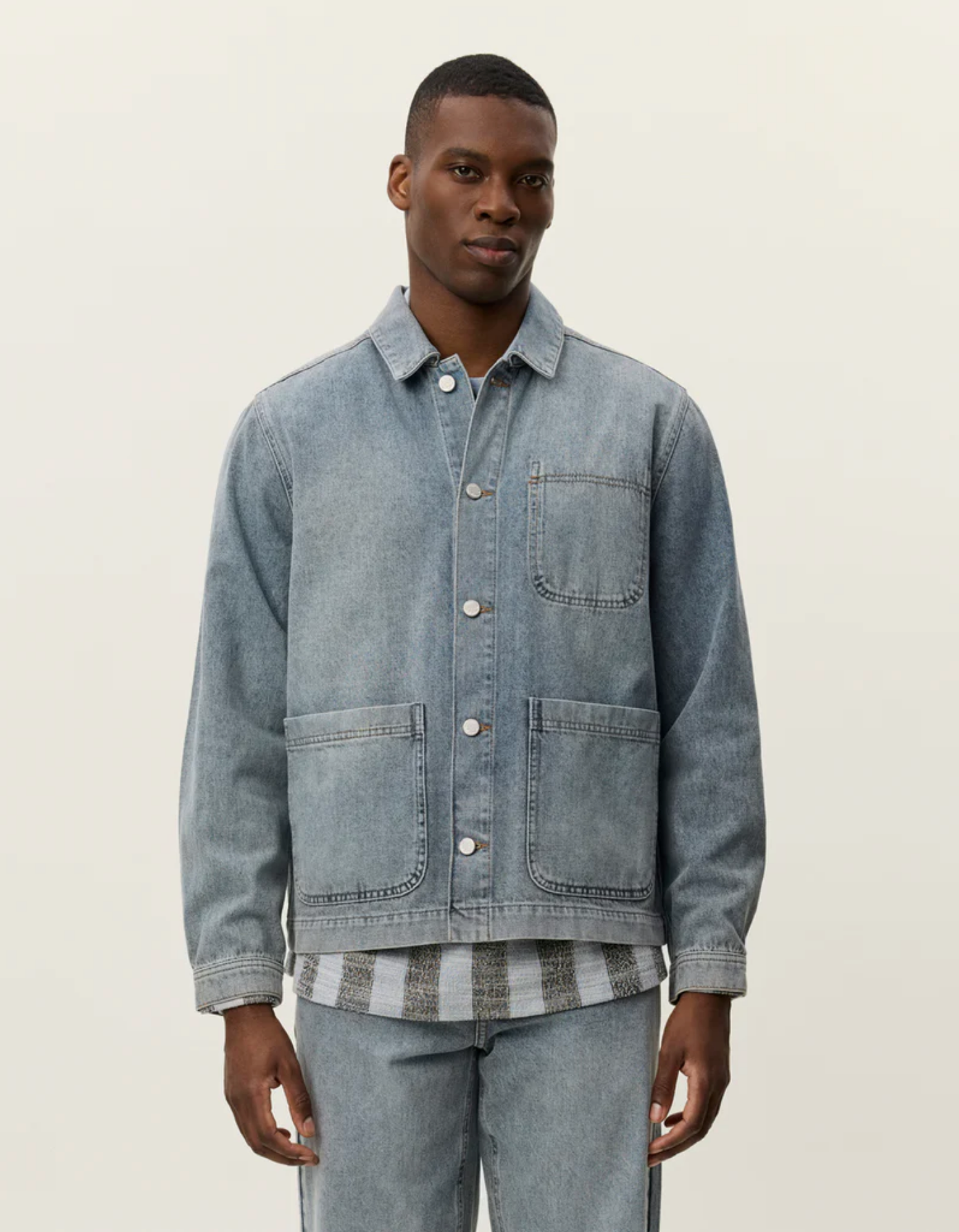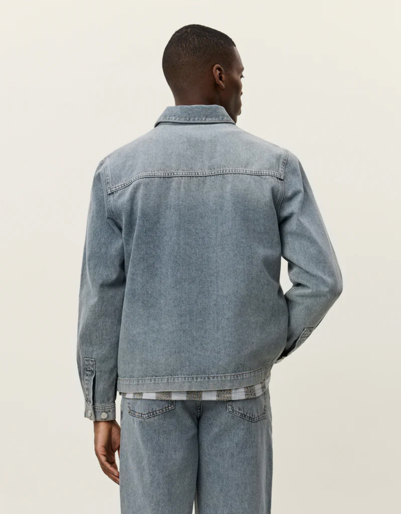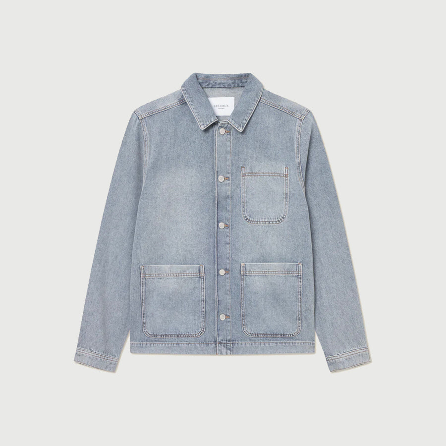 Les Deux Layton Washed Denim Overshirt - 'Light Indigo Wash'