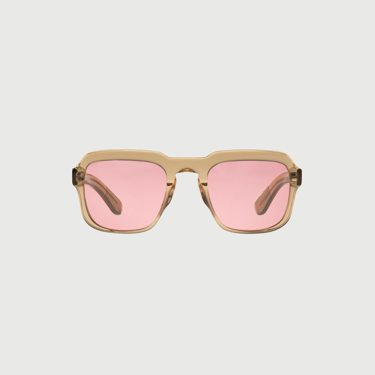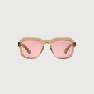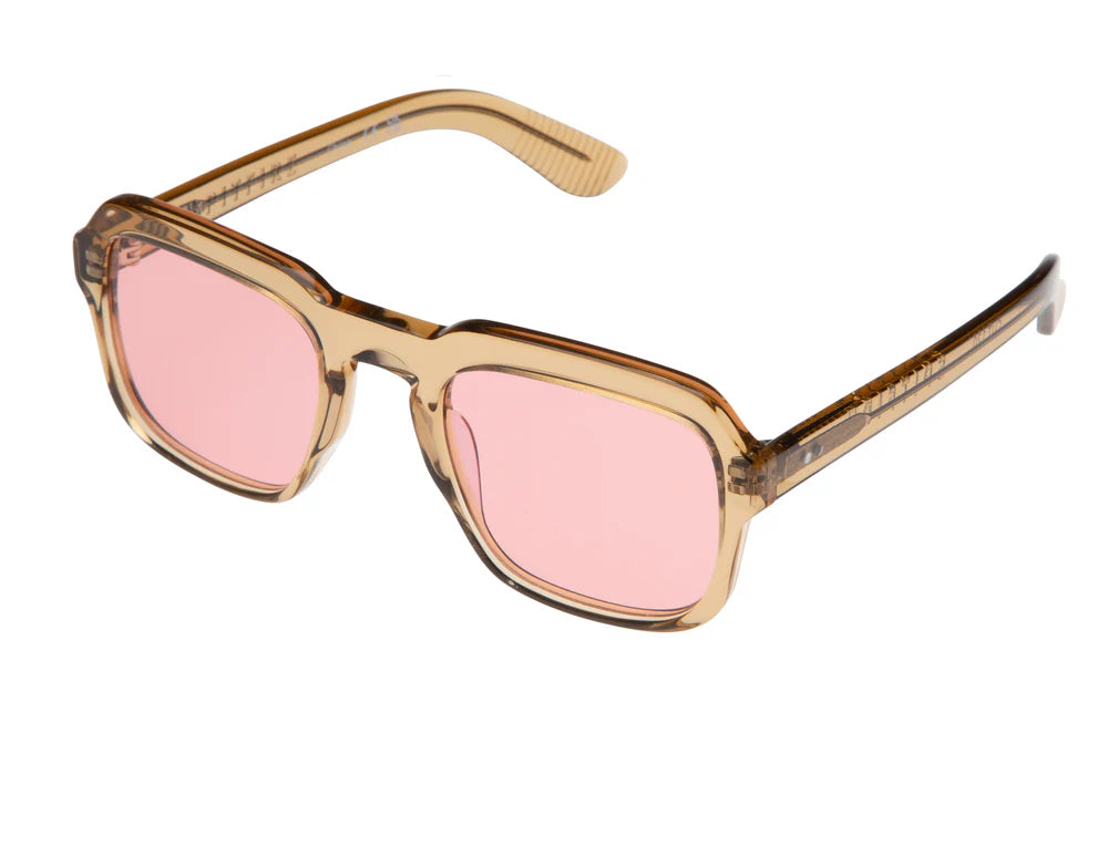 #SPITFIRECUT: OPTICAL GRADE FRAMES CUT FROM CELLULOSE BLOCK ACETATE WITH PREMIUM NYLON, ANTI-REFLECTIVE LENSES & ULTRA VIOLET PROTECTION. SQUARE, TAN FRAMES WITH KEYHOLE NOSE DETAILING & PALE PINK LENSES. SHIPS WITH CUSTOM SUNGLASS CASE AND MICROFIBER CLOTH.