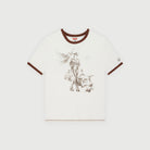 Standard Fit Short Sleeve Tee With Chest And Back Printed Art, Contrast Color Ribbed Neck And Cuffs, In A Recycled Cotton And Recycled Polyester Blended Fabrication With A Heavy Enzyme Stone Wash