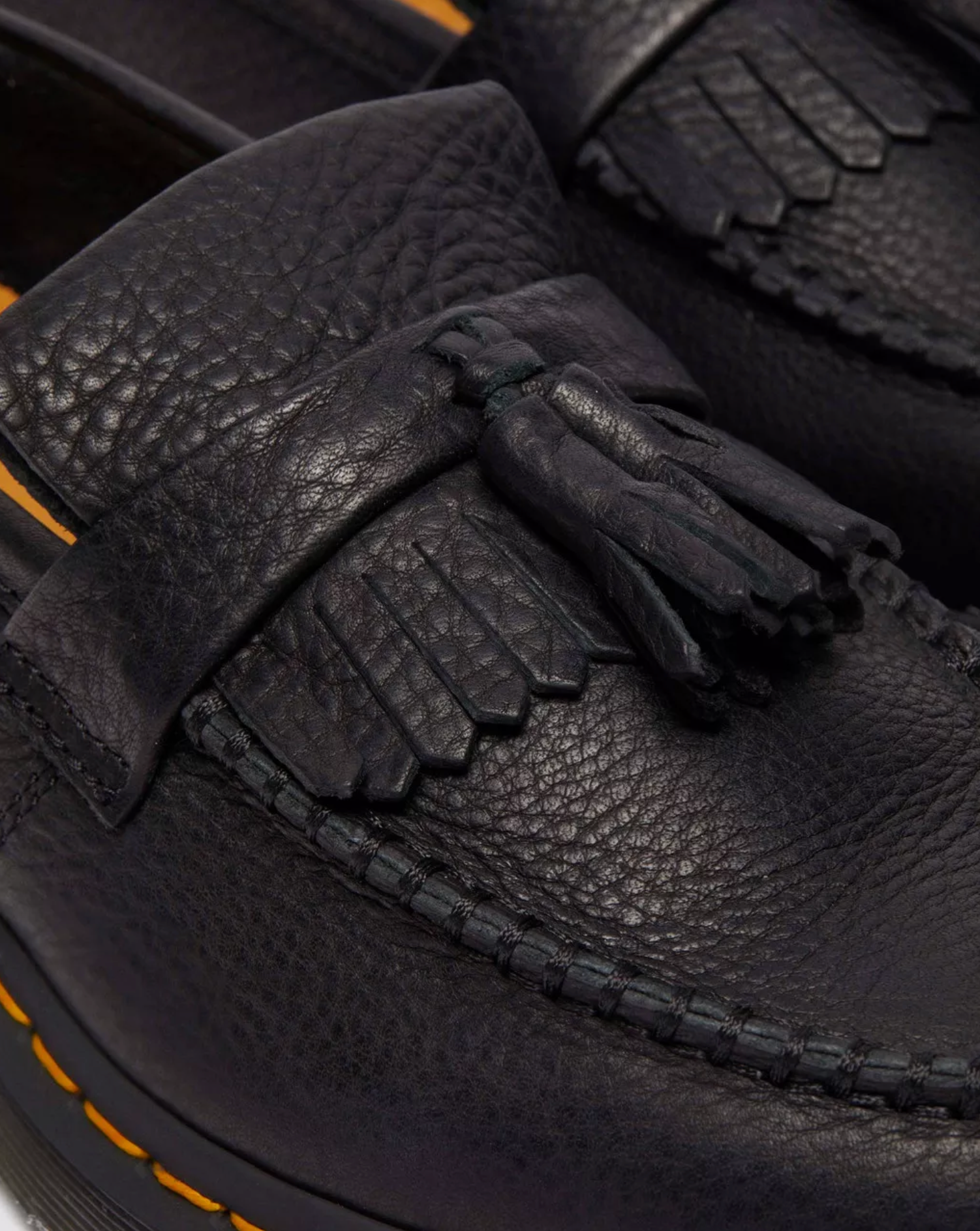We’ve gone soft. We’ve rebuilt our classic Adrian tassel loafer using luxurious Ambassador leather, a tumbled material with an oiled finish and a soft handle that makes slipping into an Original Dr. Martens silhouette even easier. The sole is secured with DM’s yellow welt stitching and marked with our signature grooving pattern.