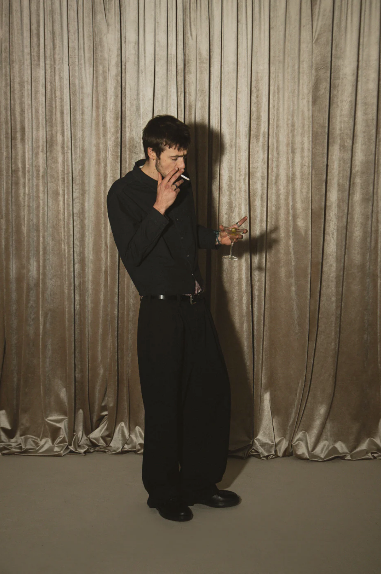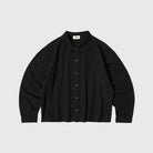 100% cotton with a garment-wash finish, raw-edge hem, hollow-snap closure, and chest-patch outline. Slightly cropped with a relaxed fit.