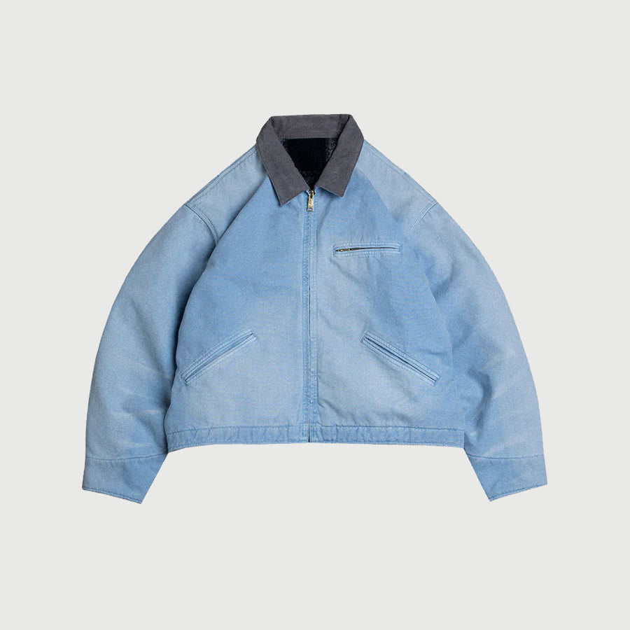 A new take on Elwood's best seller — same worn-in feel, now with a cropped fit and washed blue tone. Finished with a soft corduroy collar, plaid lining, and a perfectly broken-in wash. A statement color made to stand out quietly.
