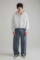 The return of the Rectangle Zip Hoodie. Oversized with drop shoulders, extended sleeves, and a slightly cropped hem, while keeping the iconic boxy fit you know. Full zip front for easy layering, paired with a vintage wash that’s worn-in just right.
