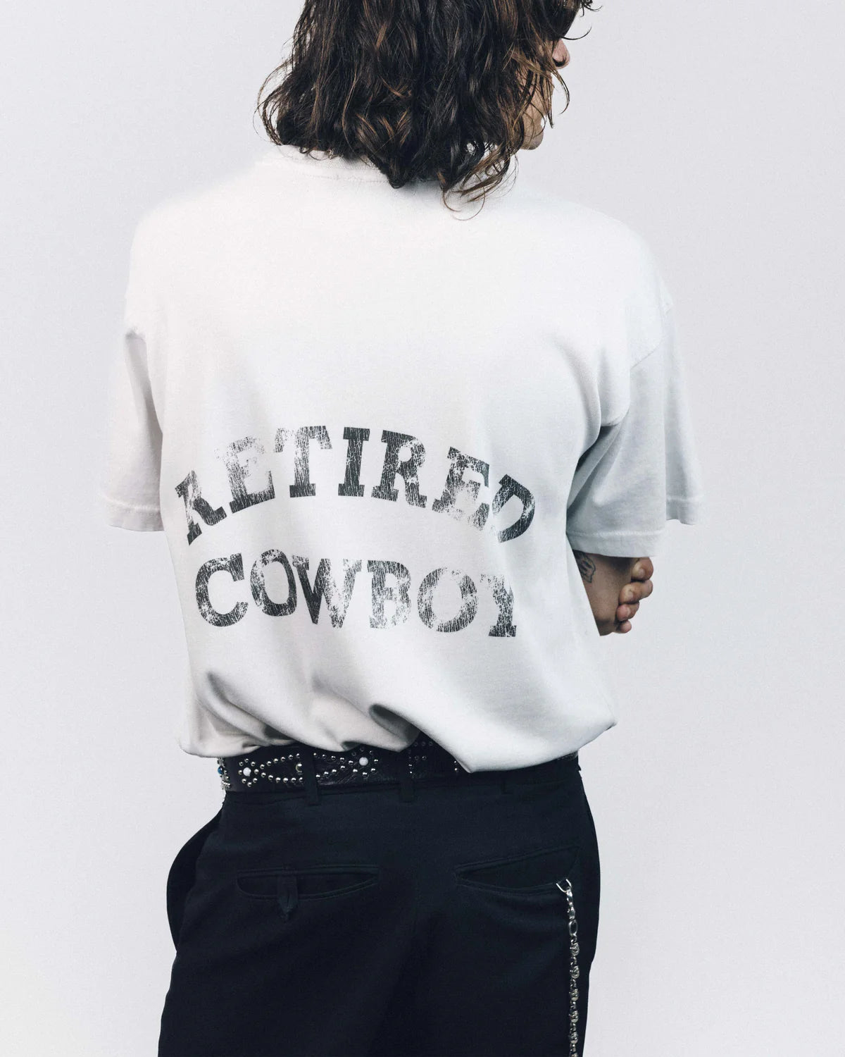 The Retired Cowboy Tee features Direct to Garment artwork on a heavyweight 260 GSM / 7.7 oz cotton jersey, crafted from 26 double ring-spun combed cotton for a soft, breathable, and buttery feel. Designed with a drop shoulder and oversized fit, this tee offers a relaxed silhouette that drapes effortlessly. Designed for comfort, this is the tee you will go to grab over and over.