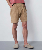 These shorts are able to hold gadgets to suit modern lifestyles, while maintaining the functionality during climbing that serves as the brand's roots. Highlighted by large pockets extending from the front to the back, the silhouette combines a comfortable looseness with a smart appearance. Tough canvas is used for these pockets, while the contrast between the two types of materials through garment dyeing is another notable feature. Also, the D-ring with the brand logo on the right side is useful in the outdoors and in the city, as it can hold keys and bottles. They are made of 100% organic cotton twill with high durability, tension, and stiffness that can even withstand strenuous movement and dyed to give character to their appearance.