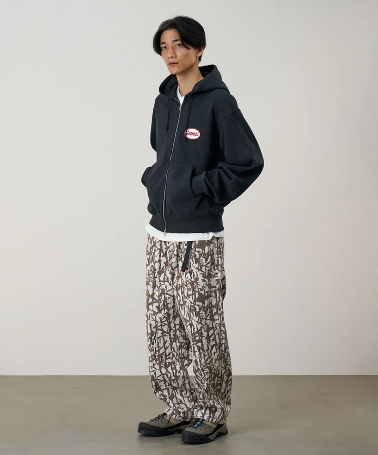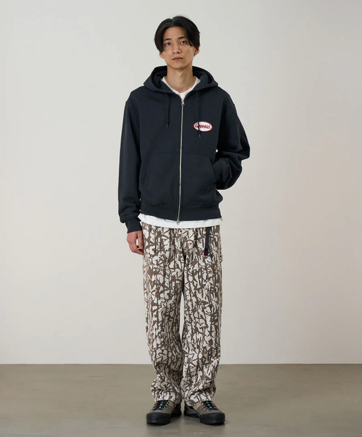 These pants are able to hold gadgets to suit modern lifestyles, while maintaining the functionality during climbing that serves as the brand's roots. Highlighted by large pockets extending from the front to the back, the silhouette has a comfortable looseness. Tough canvas is used for these pockets, while the contrast between the two types of materials through garment dyeing is another notable feature. Also, the webbing belt with the brand logo on the right side is useful outdoors and in the city, as it can hold keys and bottles. They are made of 100% organic cotton twill with high durability, tension, and stiffness that can even withstand strenuous movement and dyed to give character to their appearance.