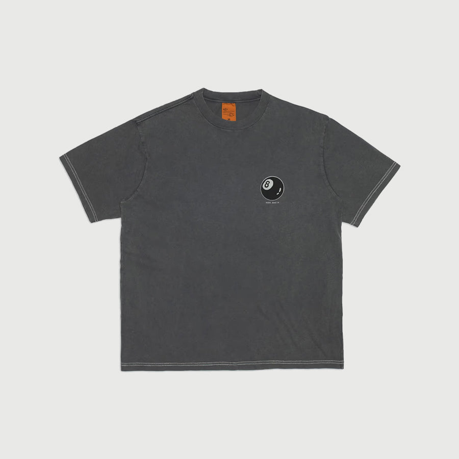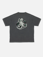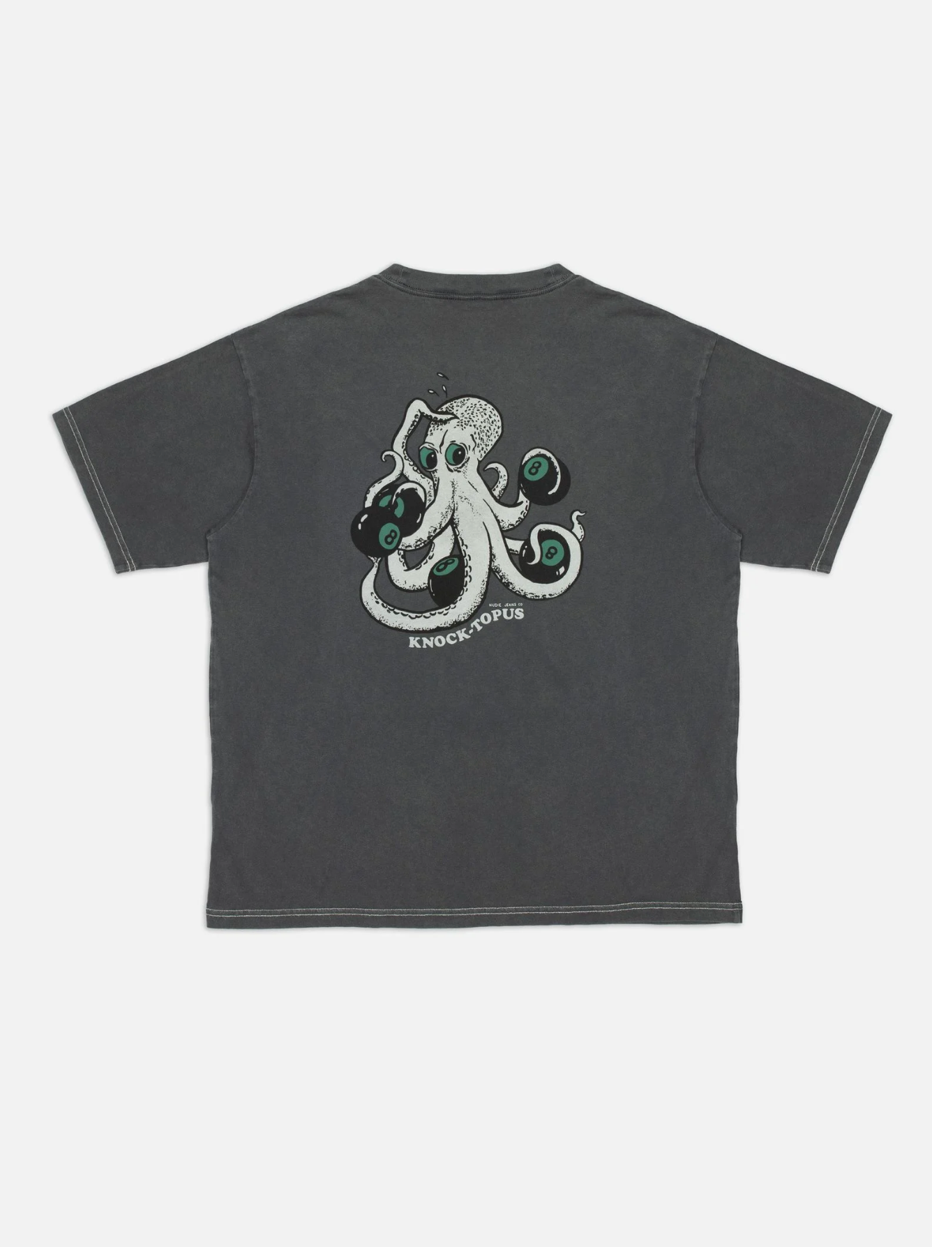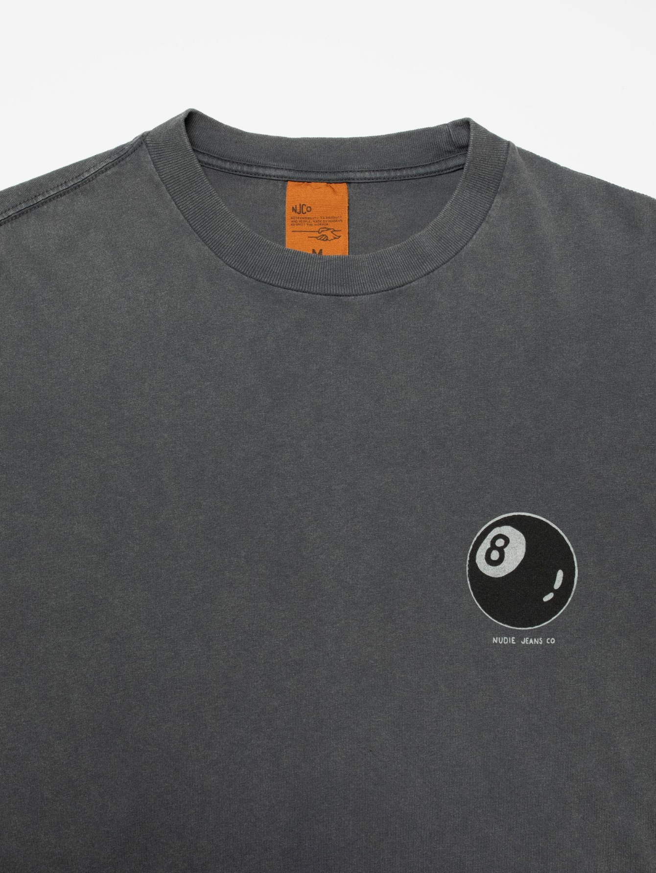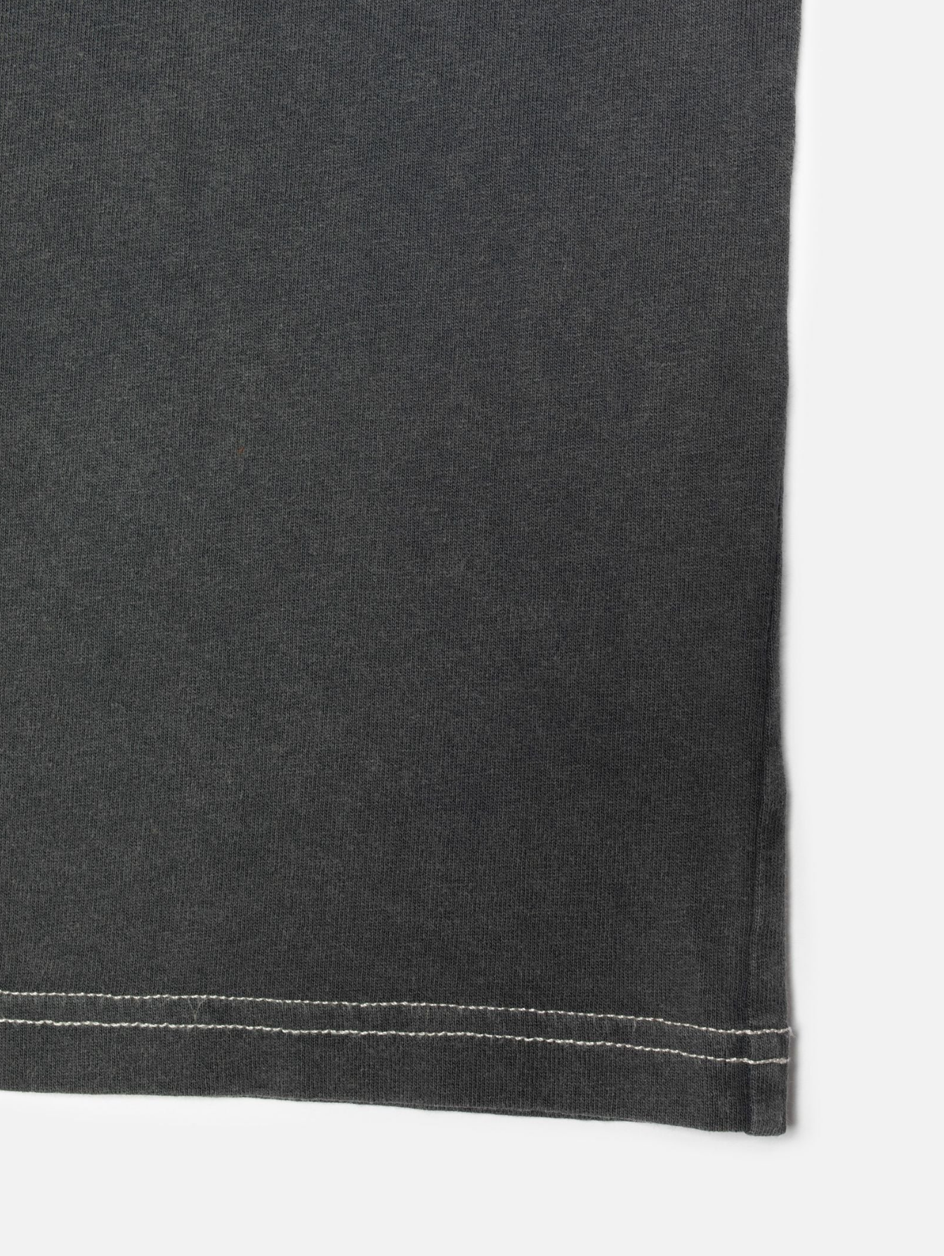 Crew neck tee made with organic cotton. The open-end spun yarn gives an open knit with an irregular character, a dry hand, and a little hairiness. The faded shade and vintage look result from the garment dye and, on top of that, a fade-out wash. This gives the lived-in outlook we think goes so well with denim. The color will continue fading as you wear and wash it. Bottom and sleeve hems are made with contrasting, off-white top stitches. This Koffe features a small print on the chest and a big one on the back.