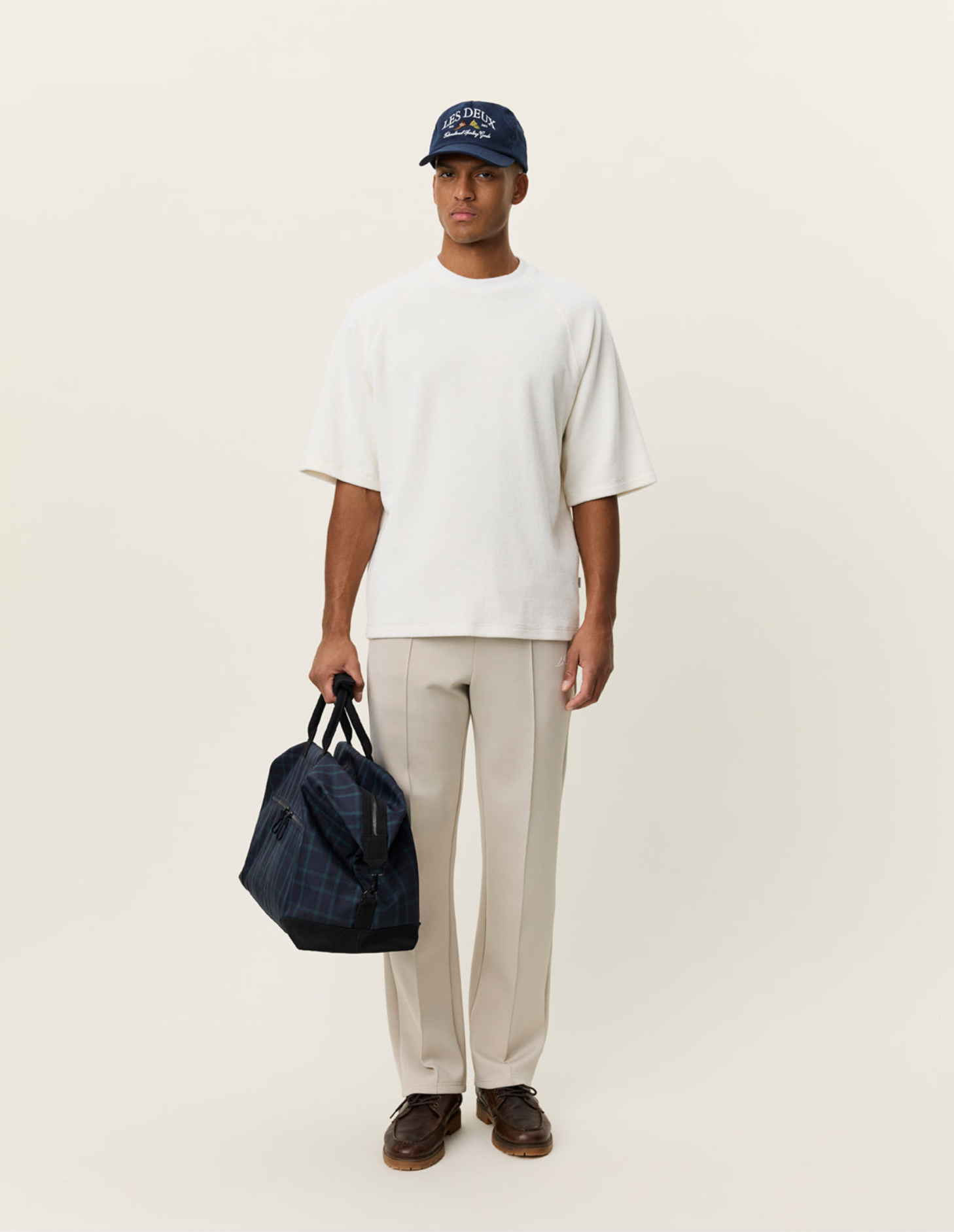 A loose heavyweight tee made in soft towel-textured cotton. Designed with raglan sleeves for easy movement and finished with subtle tonal embroidery at the back neck.