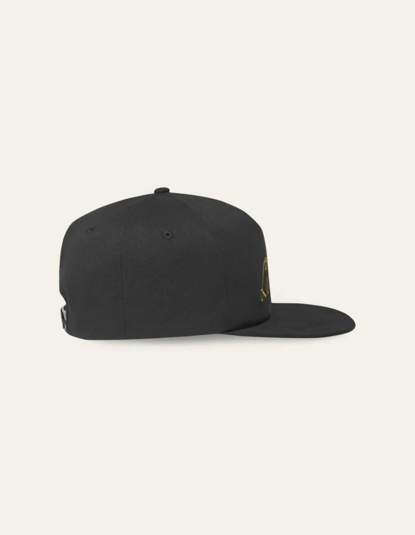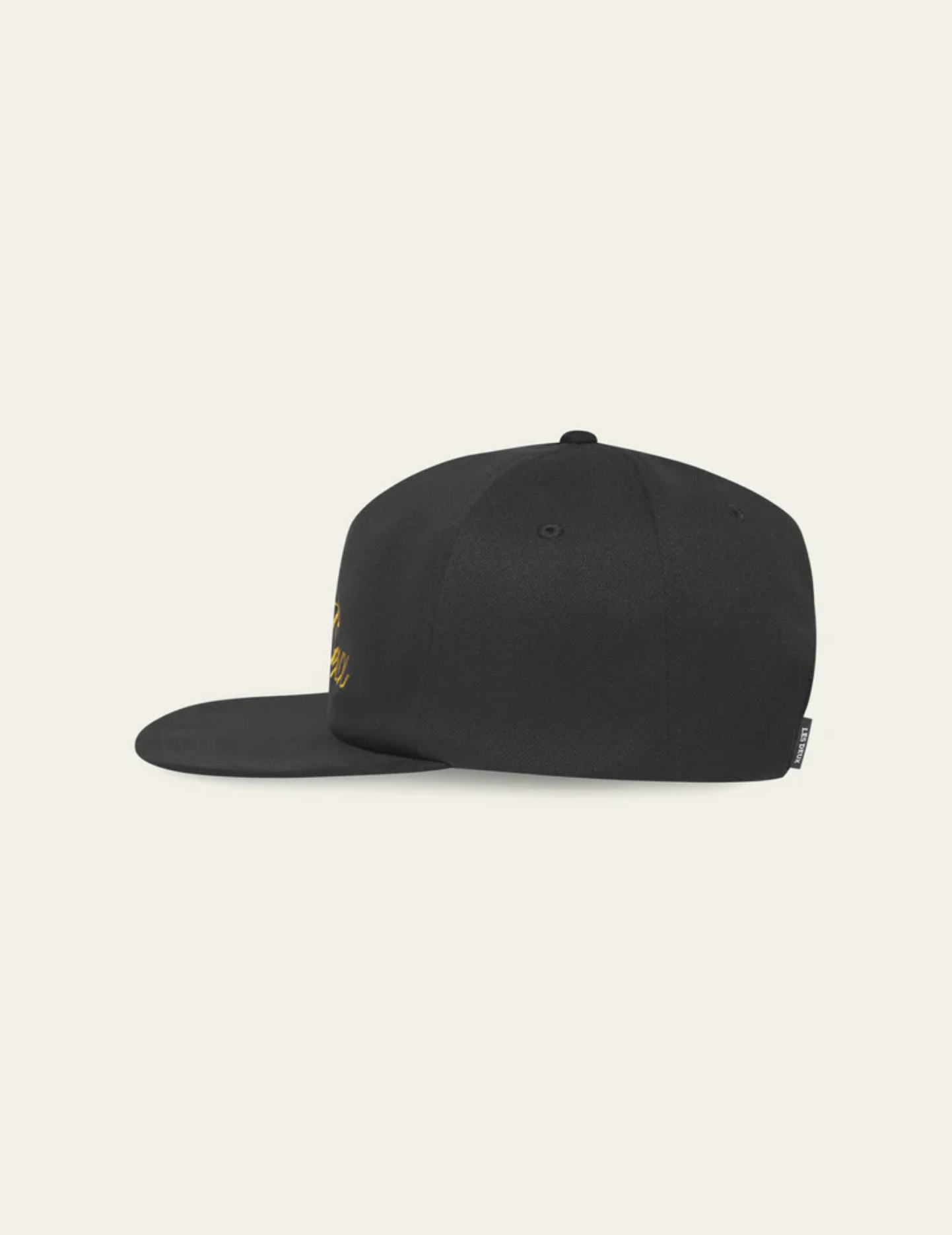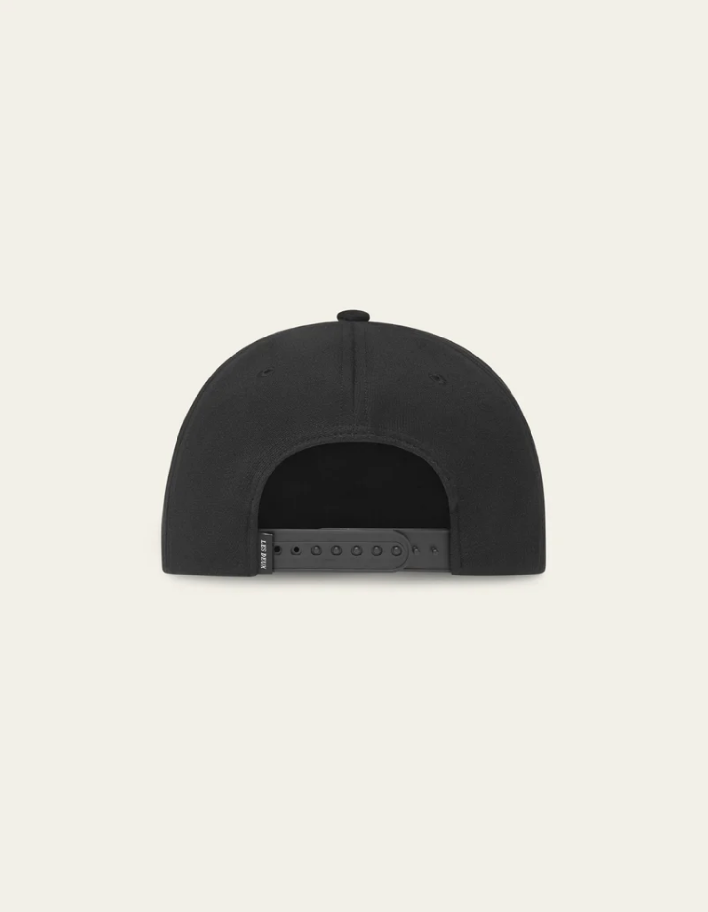 A clean Letterman cap in a brushed finish, contrasted with a faux suede visor and bold Les Deux embroidery at the front.