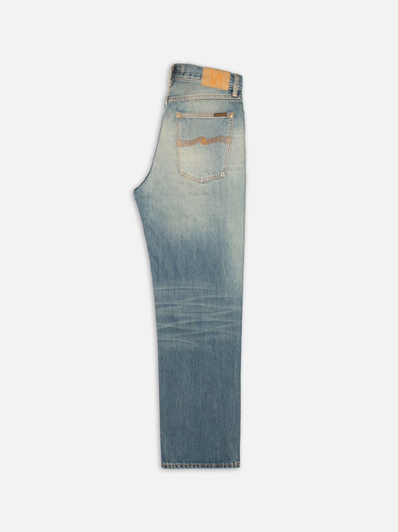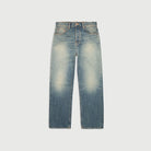Loose-fit jeans with a high waist and straight leg, washed to a pale, sun-faded tone with a warm, earthy cast. Made from 14.2 oz. rigid denim using regenerative organic cotton, the wash delivers a dusted-down, worn-in look with faded streaks and muted contrasts that bring depth to the pale indigo base. The result is a wash that draws its tones from a sunset over a desert canyon.