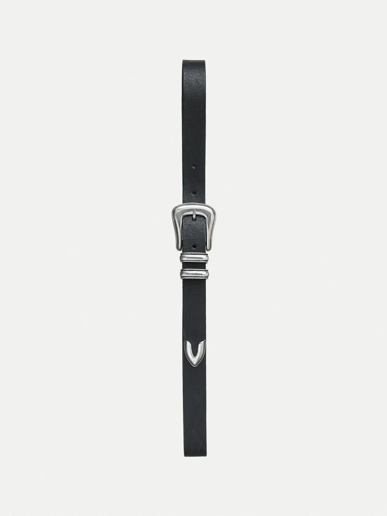 Western-style belt with a classic dashed pattern on the loops, tip, and the edges of the buckle. We make all Nudie Jeans leather accessories from the finest vegetable-tanned full-grain leather.