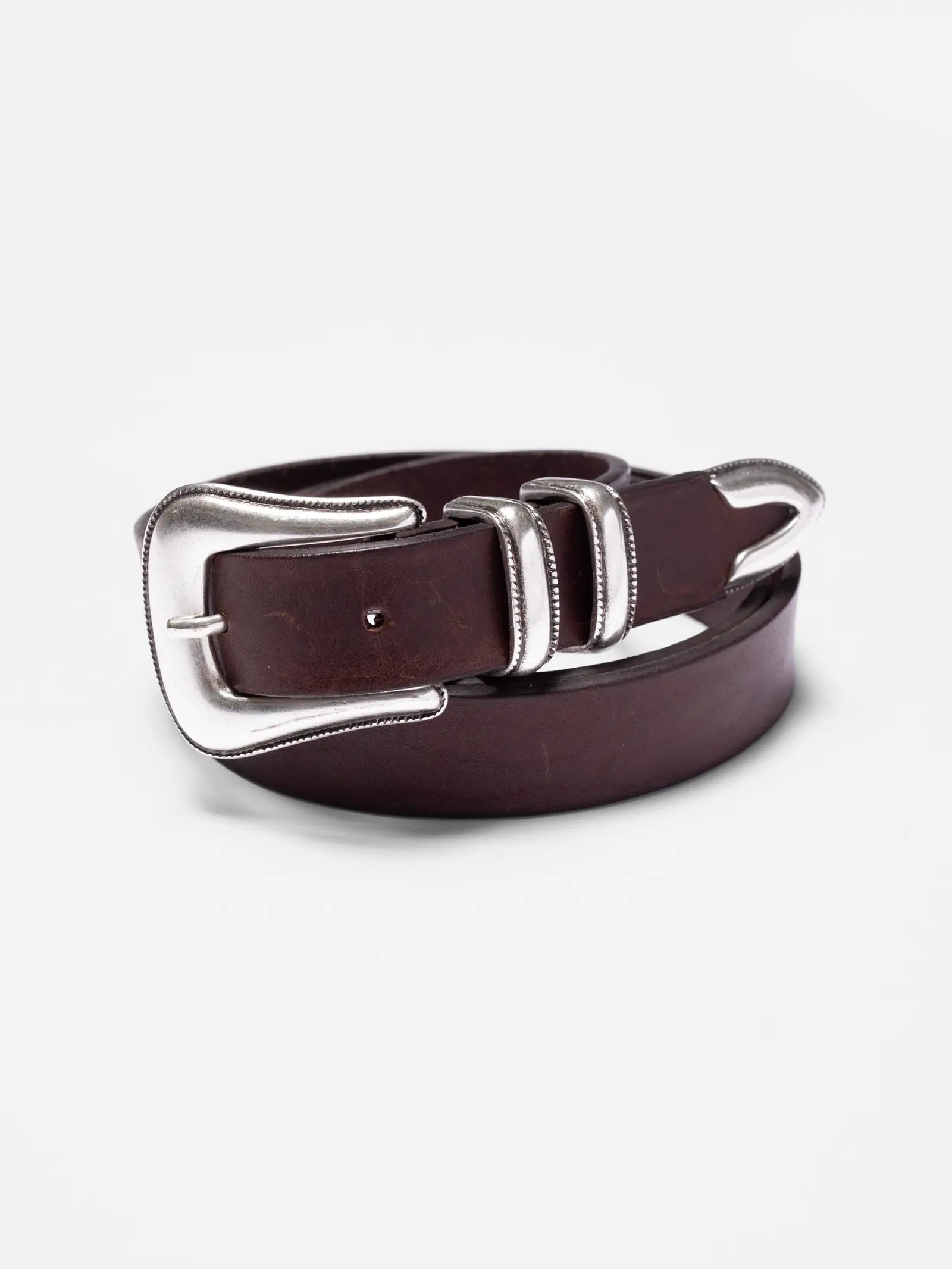 Western-style belt with a classic dashed pattern on the loops, tip, and the edges of the buckle. We make all Nudie Jeans leather accessories from the finest vegetable-tanned full-grain leather.