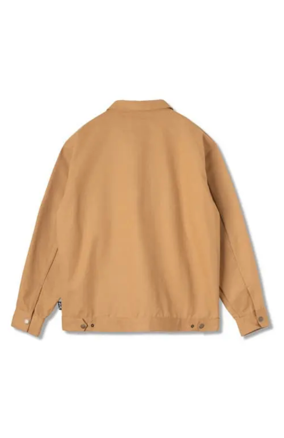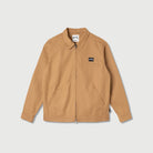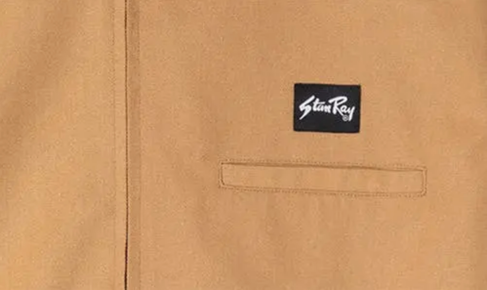 The Stan Ray garage jacket is a versatile addition to any outerwear collection. Crafted from comfortable and breathable cotton, it features a two-way front-zip closure and a spread collar. The jacket is designed with adjustable snap cuffs and side tabs for a customized fit. Functional pockets include a chest welt pocket and front welt pockets. Authenticating branding is tagged at the chest pocket. This is a collared, casual, chore jacket. Made from 100% cotton.