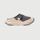 The unisex HOKA Ora Primo EXT mules in Charcoal Grey and Birch refine functional comfort through meticulous detail. Designed with a concealed rubber heel and toe guard for protection, reflective webbing for day-to-night style, and an adjustable G-shaped buckle for a superior fit, these mules set a new standard for recovery wear and everyday comfort. Featuring a dual-density midsole construction, soft cushioning up top for plush impact absorption and firm support below for stable arch reinforcement, they combat foot fatigue while preventing excessive softness.