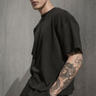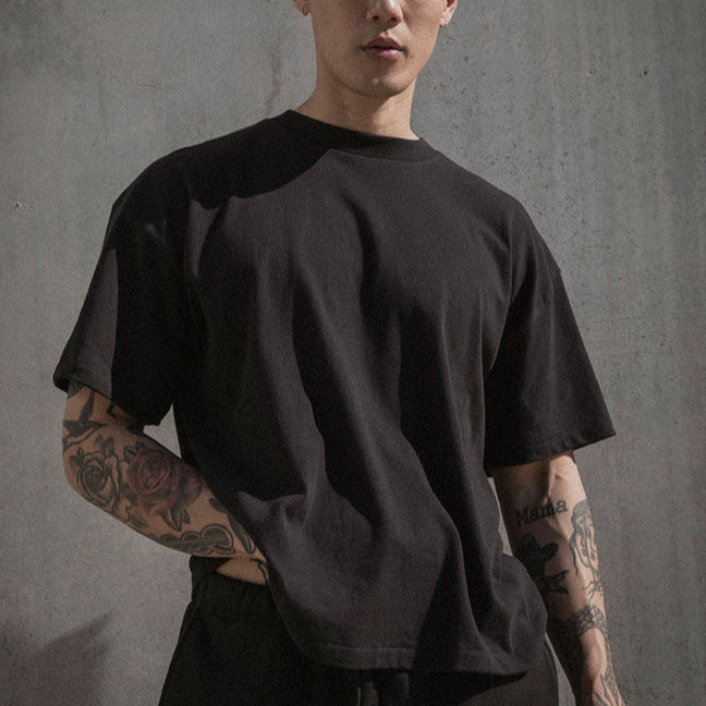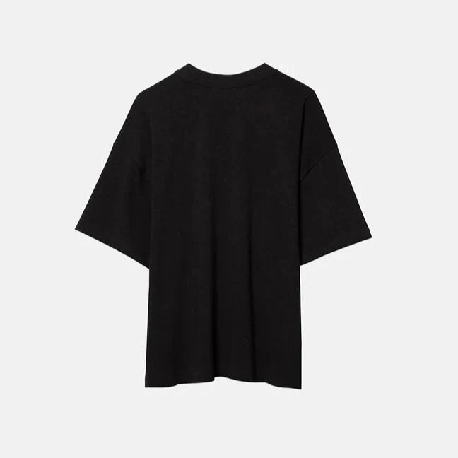 The 100% cotton jersey tee features a heavier weight fabric for a soft, draped silhouette. Boxy fit and no distressing for a clean finish.