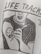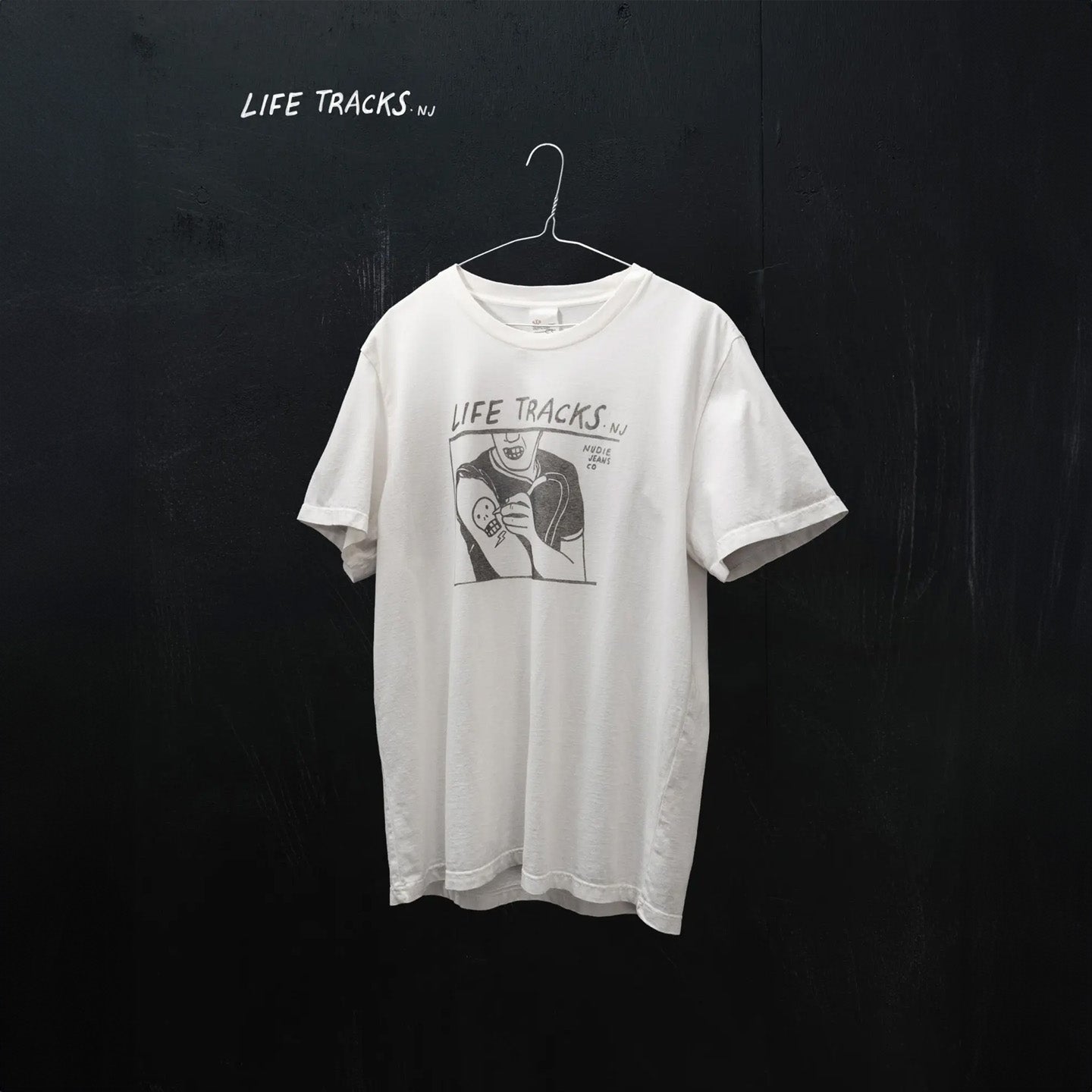 Crew neck tee made with organic cotton. The open-end spun yarn gives an open knit with an irregular character, a dry hand, and a little hairiness. The light vintage look results from the garment dye and, on top of that, a fade-out wash. This gives the lived-in outlook we think goes so well with denim. The color will continue fading as you wear and wash it. Print on the chest.