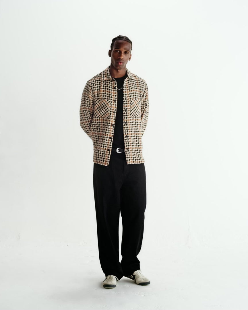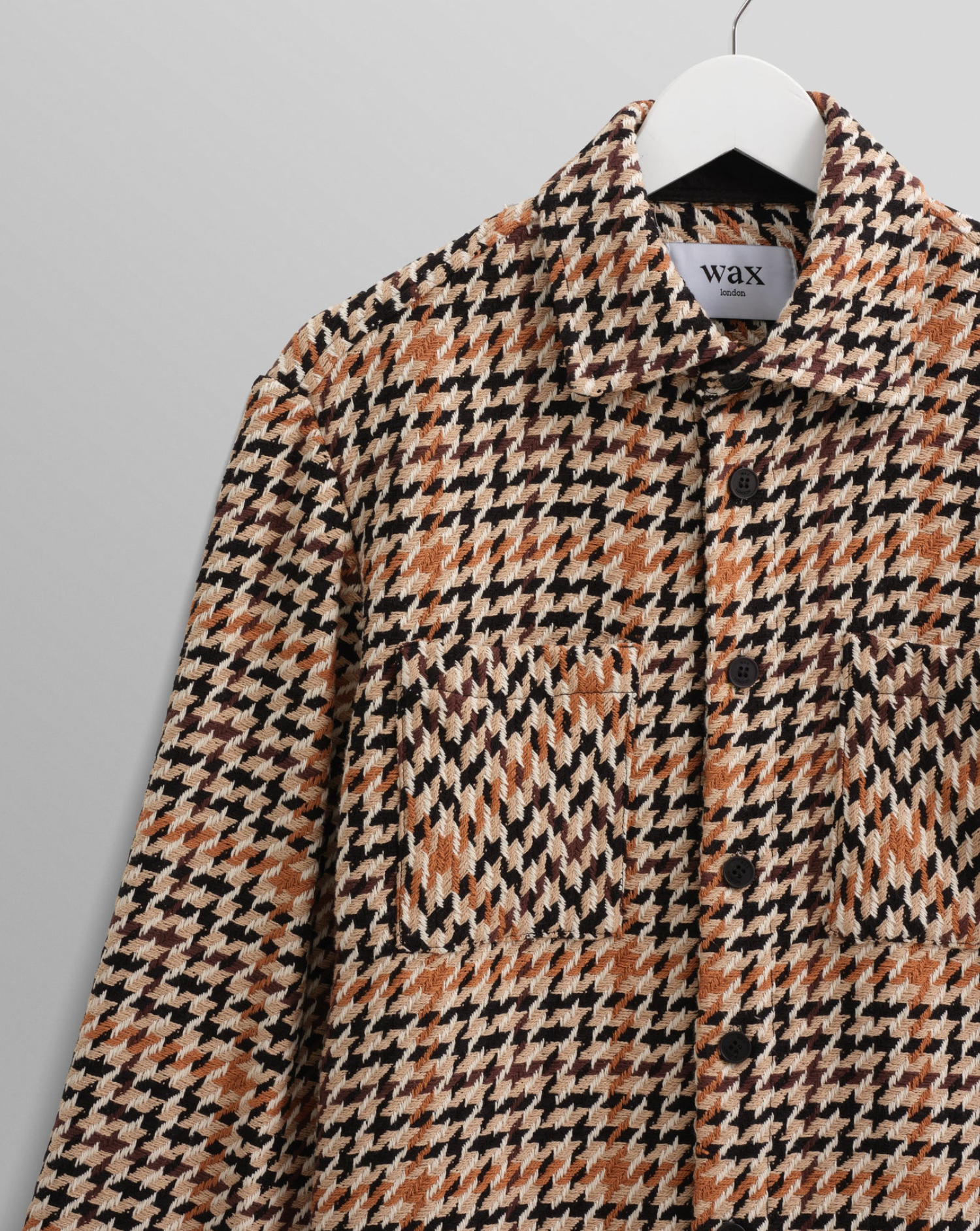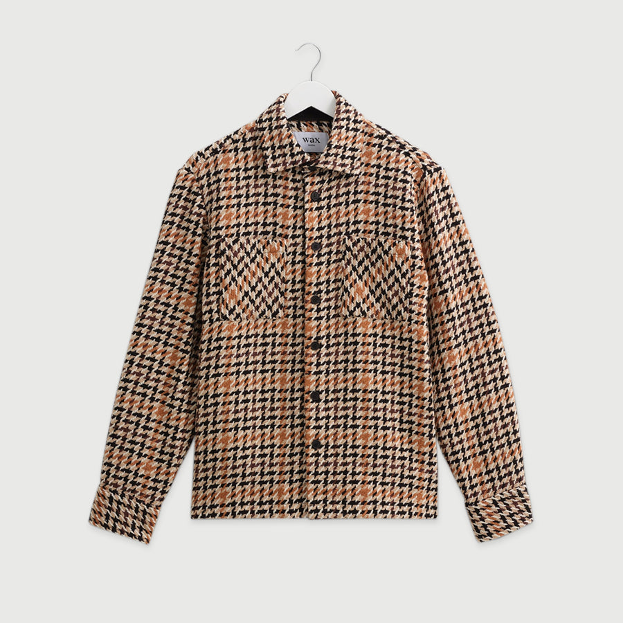 The Wax signature piece. The Whiting, our year-round staple, returns in a houndstooth design that mixes beige, ecru and black yarns. This fabric is made sustainably by a family-run French mill using recycled cotton to create an effortlessly wearable overshirt that combines timeless style with responsible craftsmanship. Is it a shirt? Is it a mid-layer? Is it a jacket? It's all of those things and much, much more.