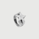 THE SHOOTING STAR RING MADE 925 STERLING SILVER DEPICTS A STAR THAT WARPS AROUND THE RINGS BASE.