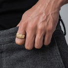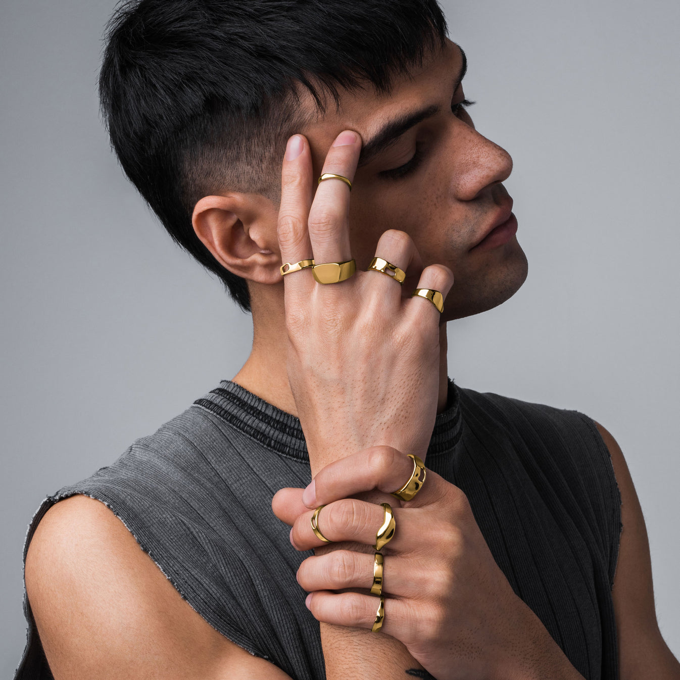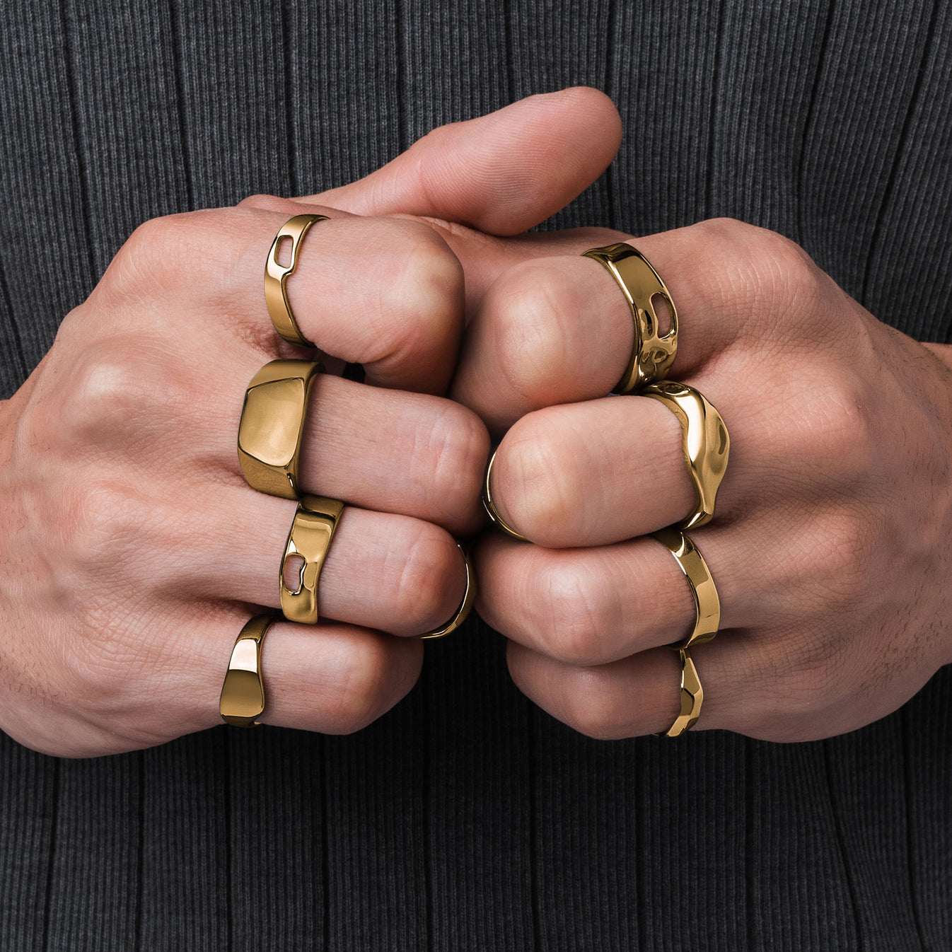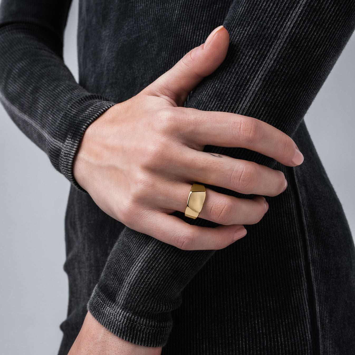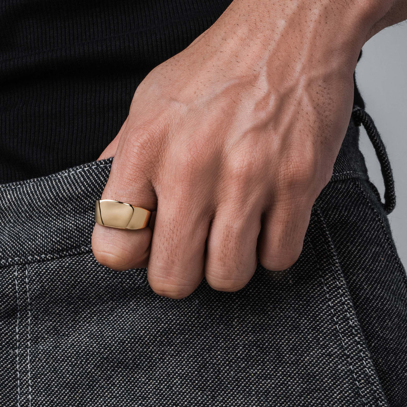 The Burden is a heavy-duty signet ring that wears its imperfections well. With a tapered top panel that looks like it's been partially crushed under weight, the Burden's rippled appearance balances smooth and rough elements. Wear it as the scene-stealing centerpiece in your next ring stack.