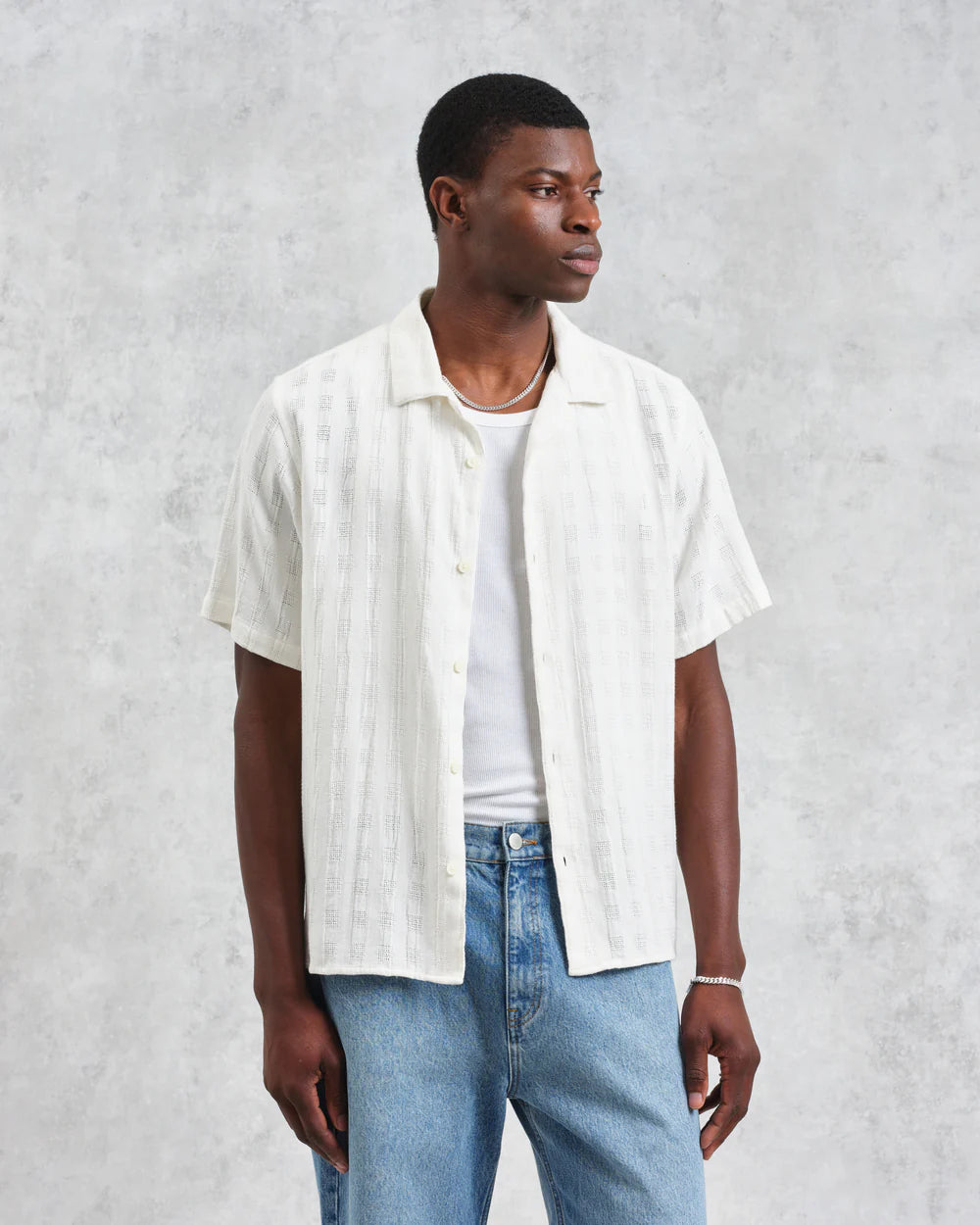 Wax London Open Weave Grid Didcot SS Shirt - 'Ecru'