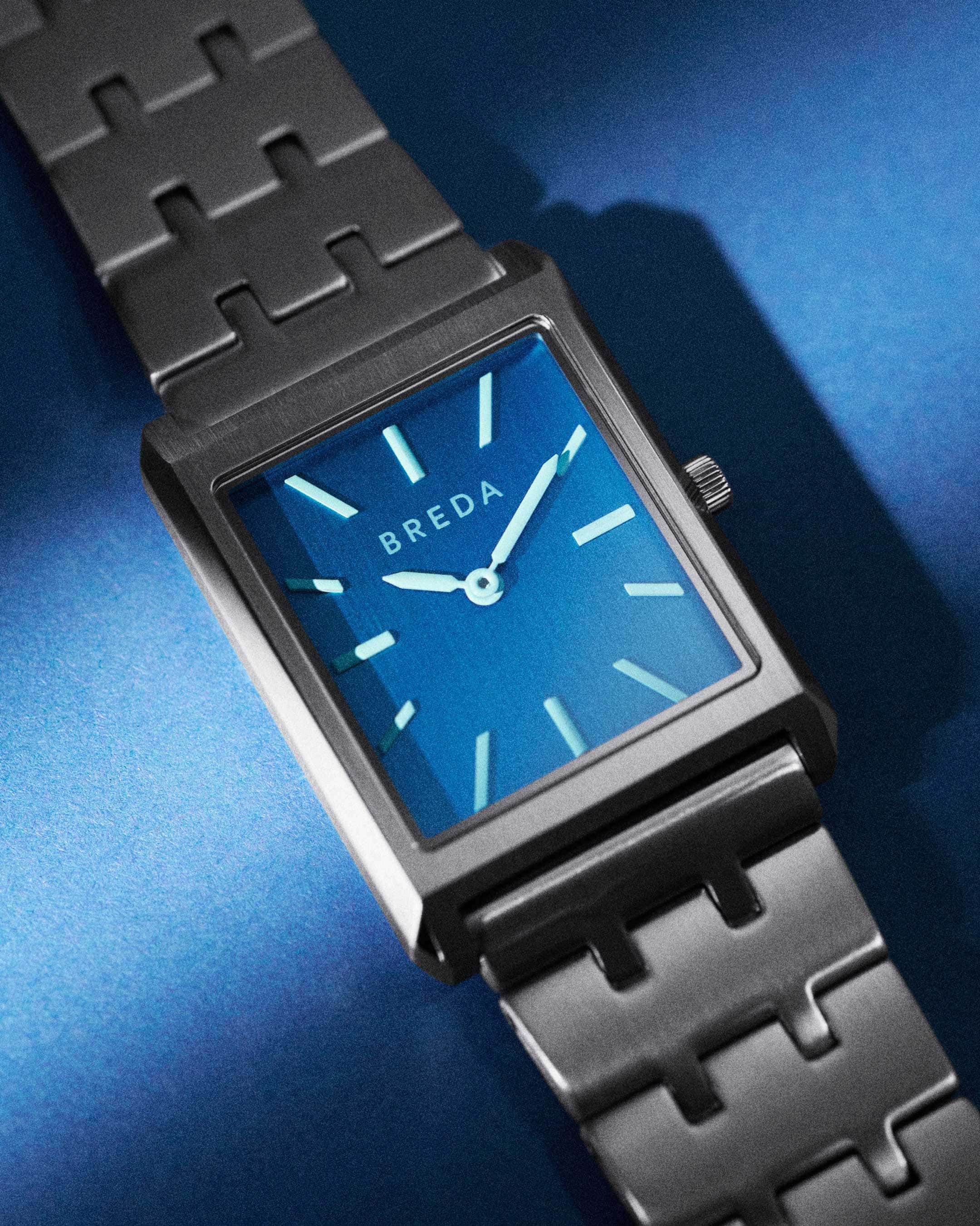 Introducing Jade and Cobalt, colorful extensions of the well-appointed and sophisticated Virgil (Metal) collection. Virgil (Metal) boasts a slim 26mm rectangle case that meets a tapered bracelet and fastens with a pusher clasp. With a brushed dial and refined sleek edges, the Virgil (Metal) reflects the sentiment of a vintage timepiece.