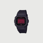 Go bold, tough, and intense, with the G-SHOCK black and red collection. The vibrant, high saturation red of the LCD really pops against the black bezel and band, not only enhancing visibility but also pushing the envelope of daring design. Activate the backlight to light up the digital display for even better visibility. Make a unique statement in all black, with a touch of bold red.